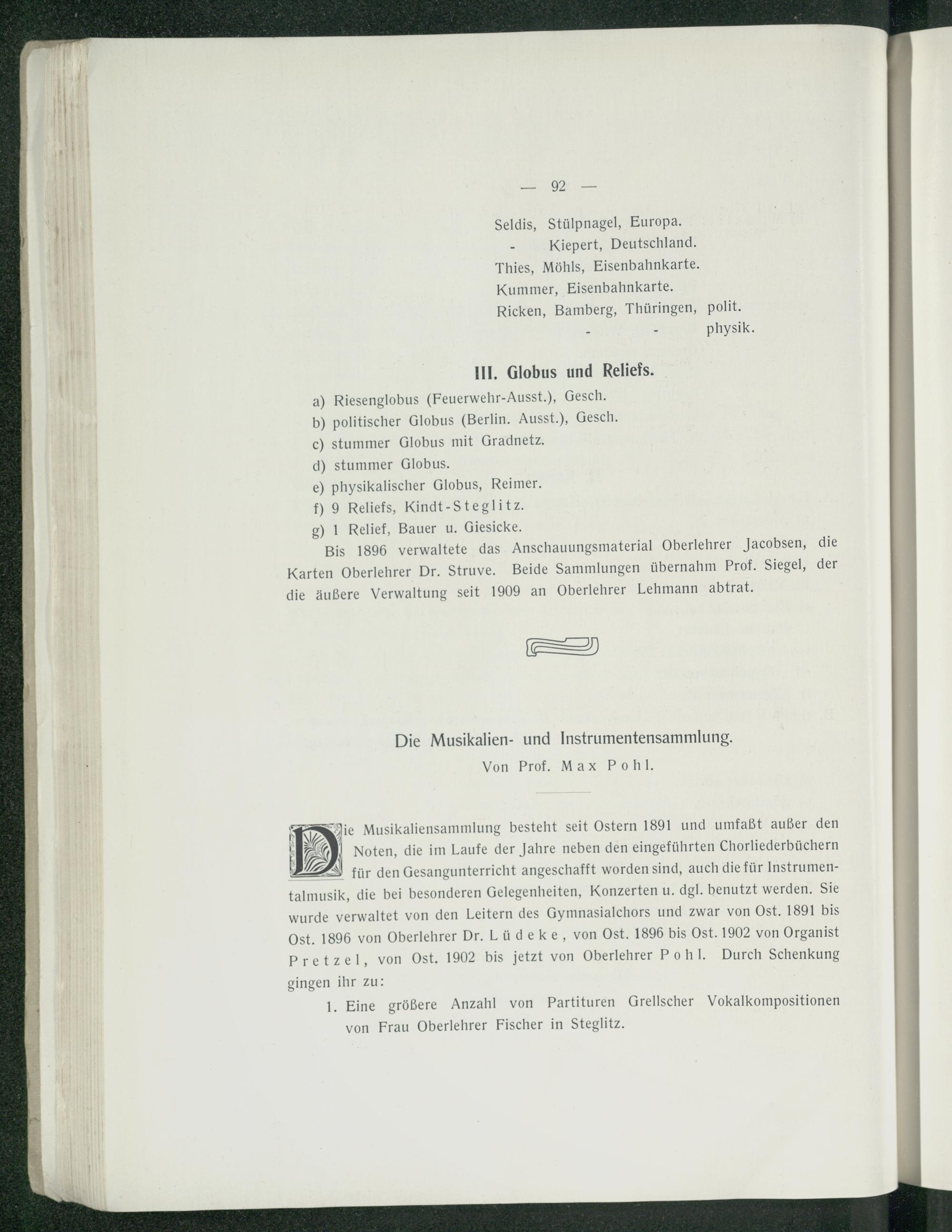 Die Musikalien- und Instrumentensammlung.
