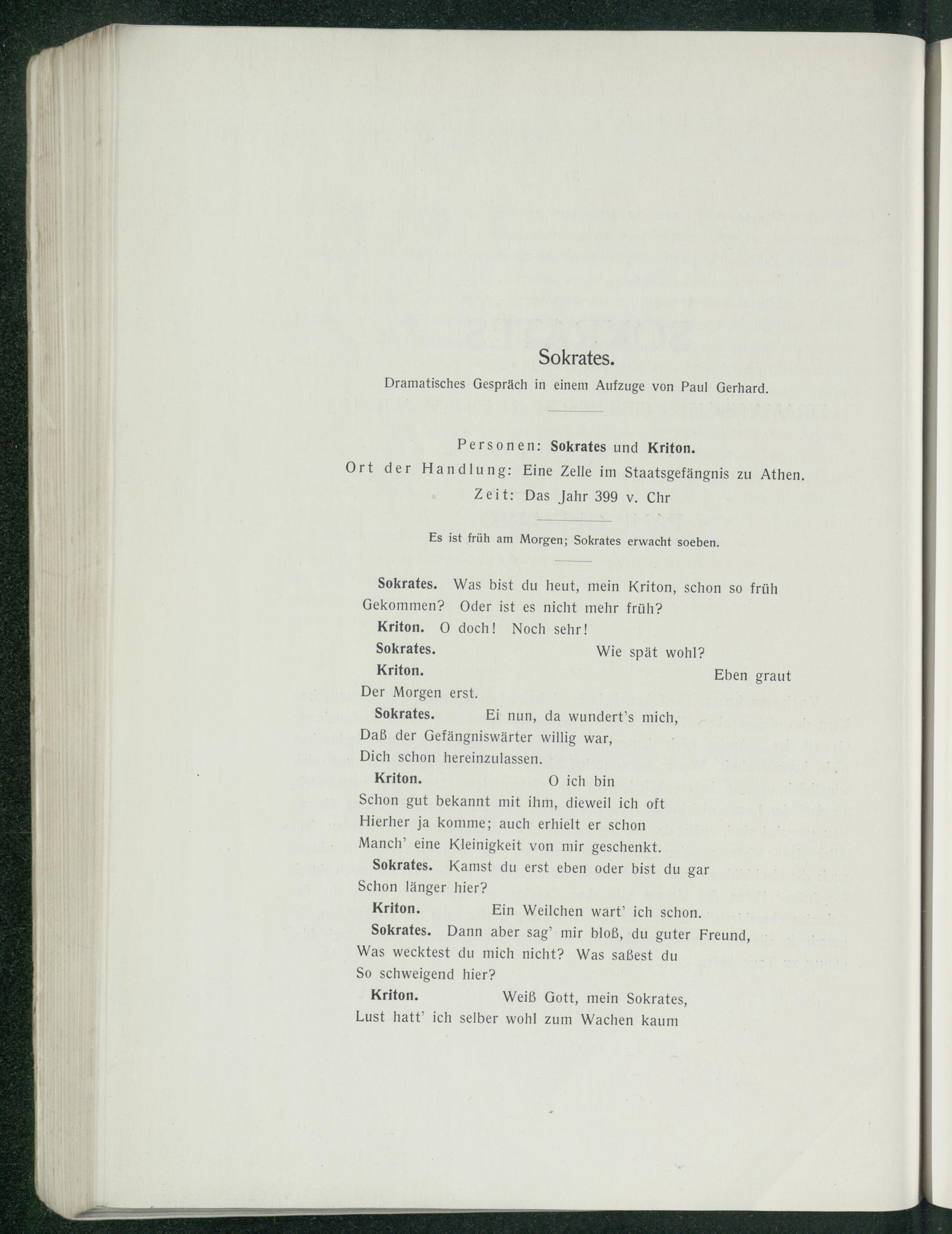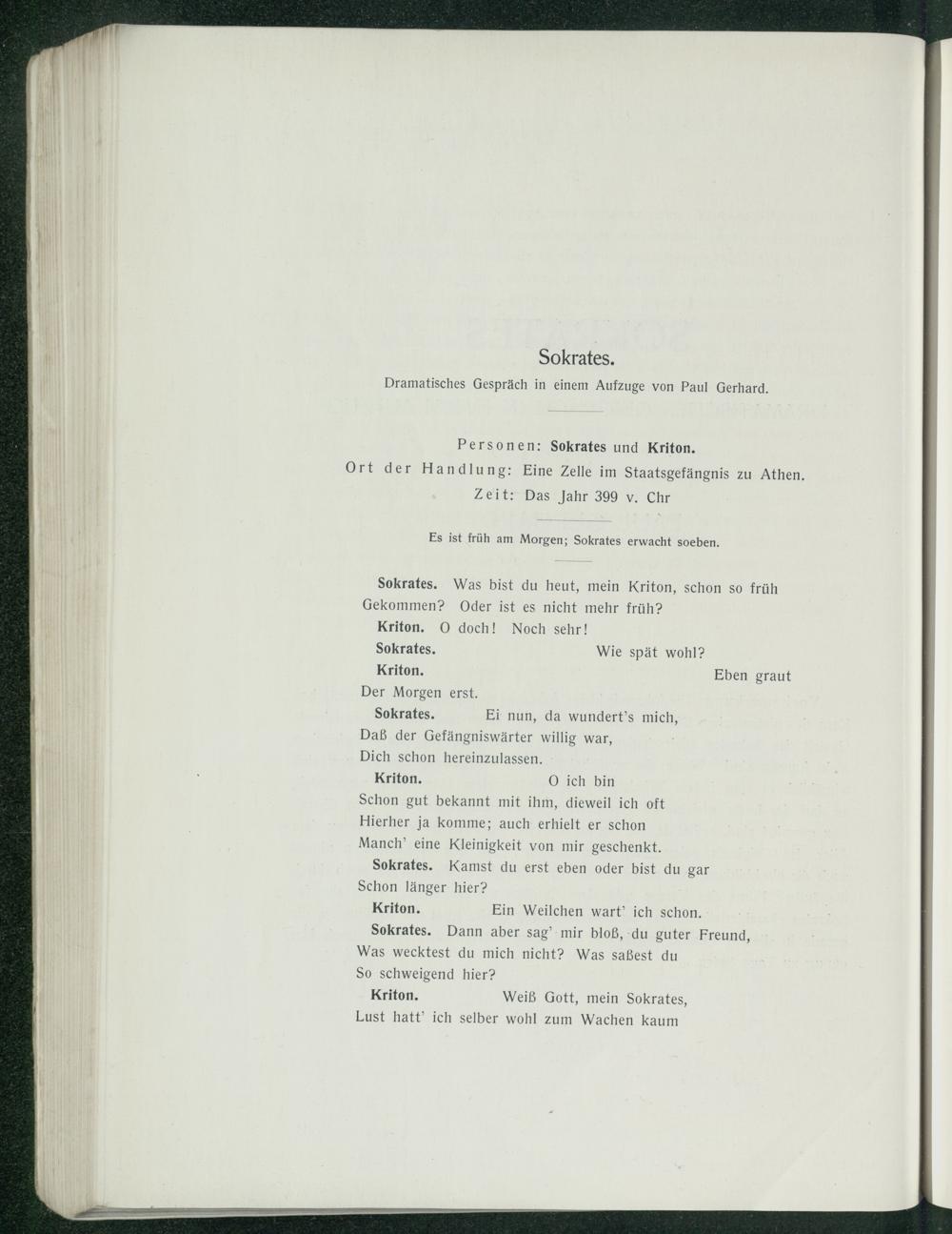 Sokrates. Dramatisches Gespräch in einem Aufzuge von Paul Gerhard.