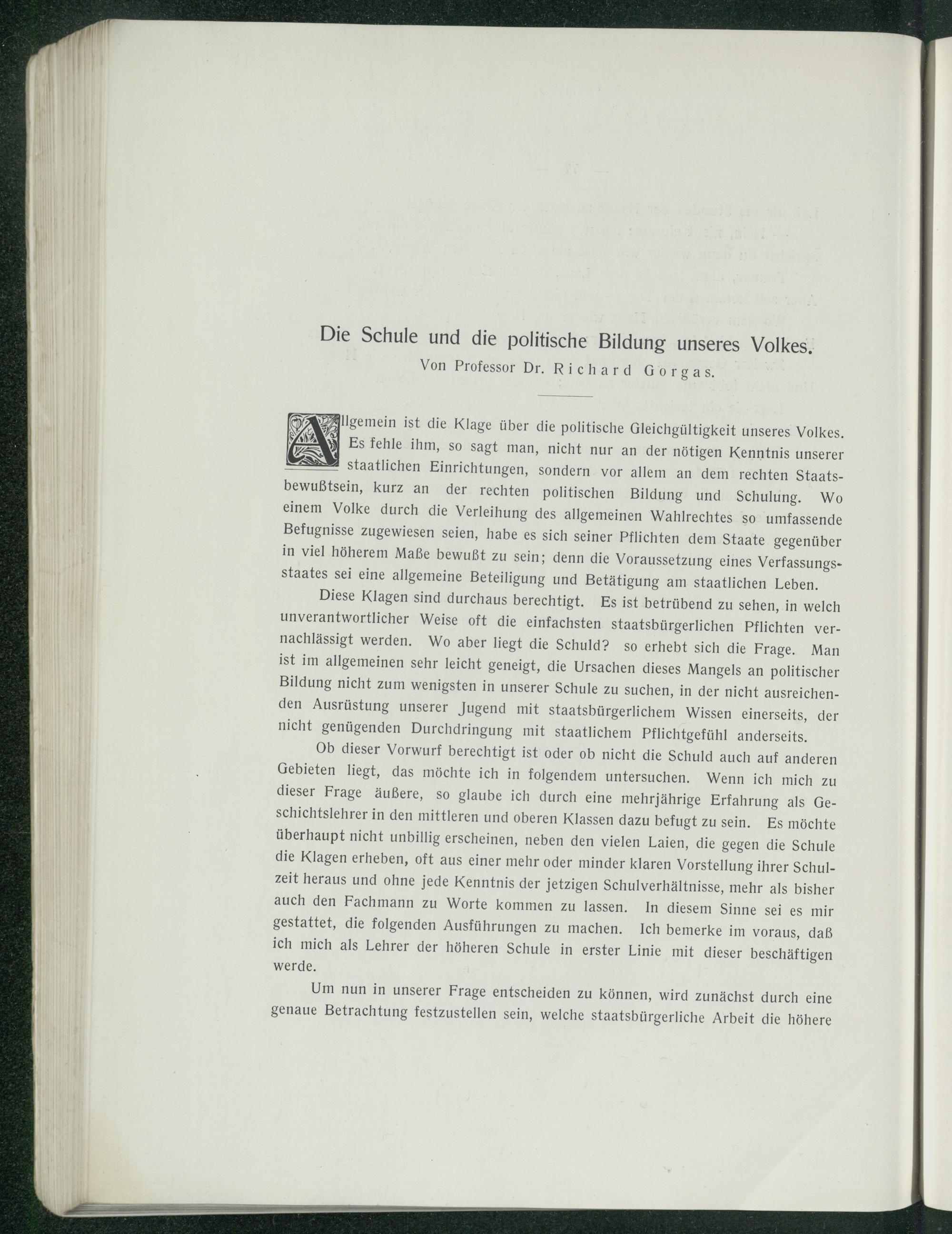 Die Schule und die politische Bildung unseres Volkes.