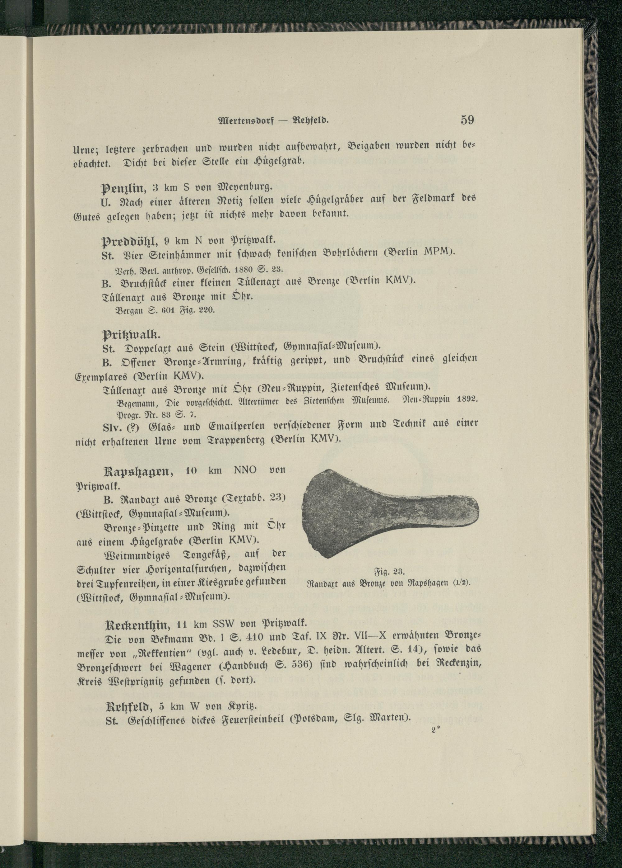 Bd. 1, H. 2, Beih.. Die vor- und frühgeschichtlichen Denkmäler des Kreises Ostprignitz