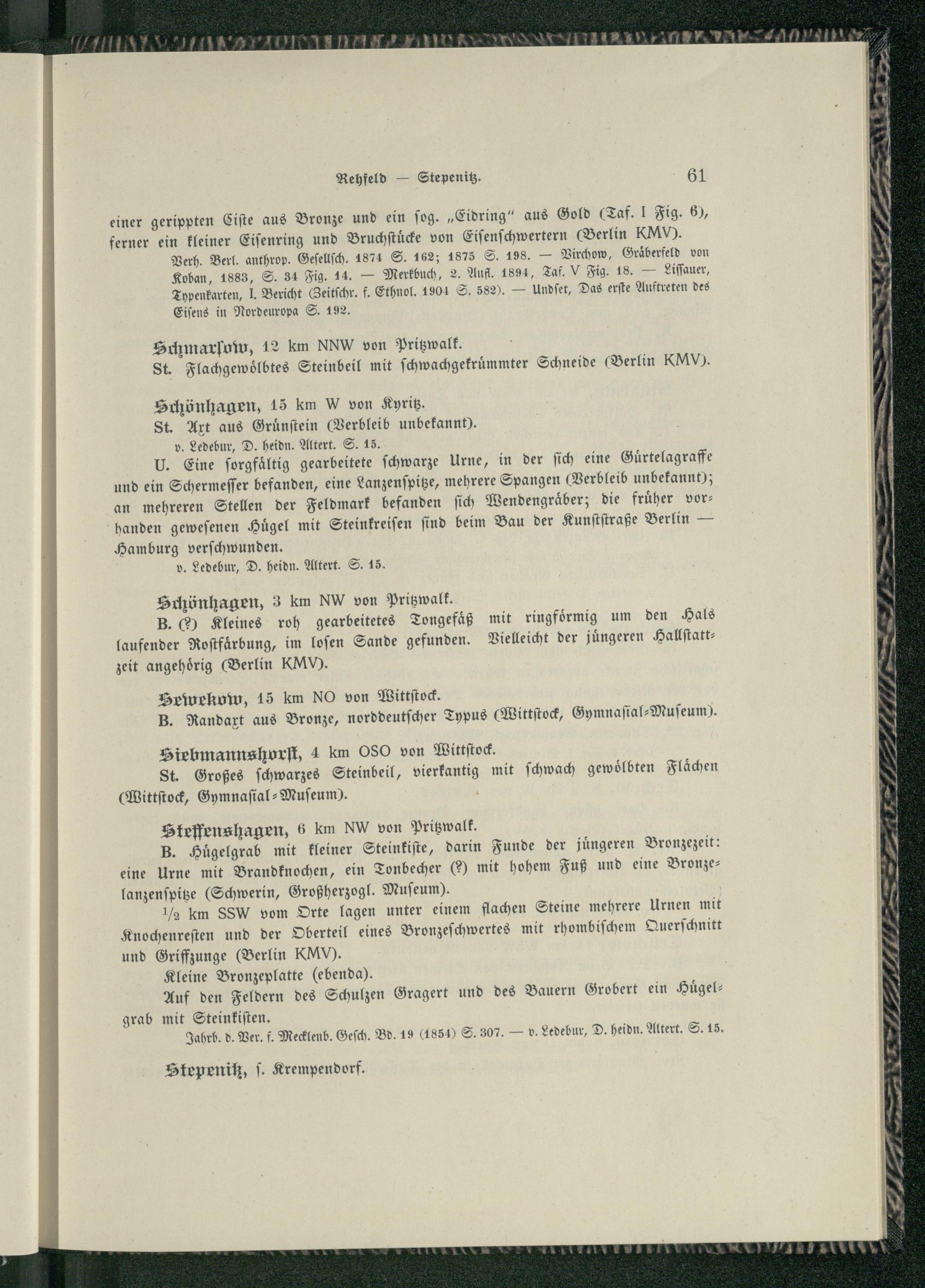Bd. 1, H. 2, Beih.. Die vor- und frühgeschichtlichen Denkmäler des Kreises Ostprignitz