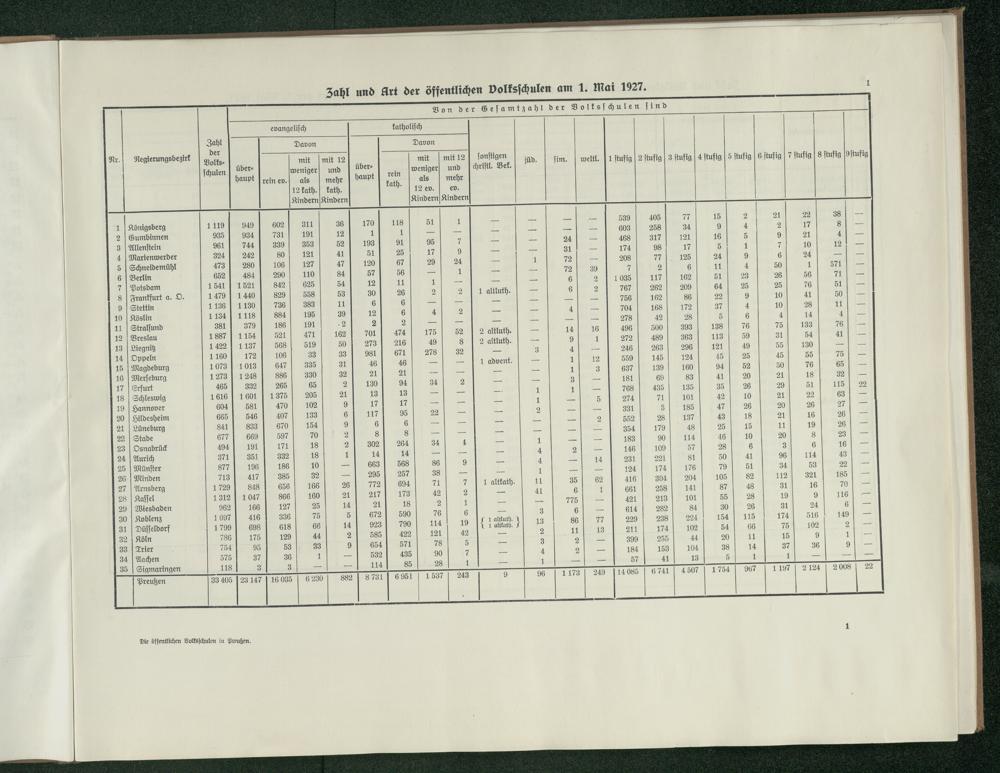 Die öffentlichen Volksschulen in Preußen nach dem Stande vom 1. Mai 1927