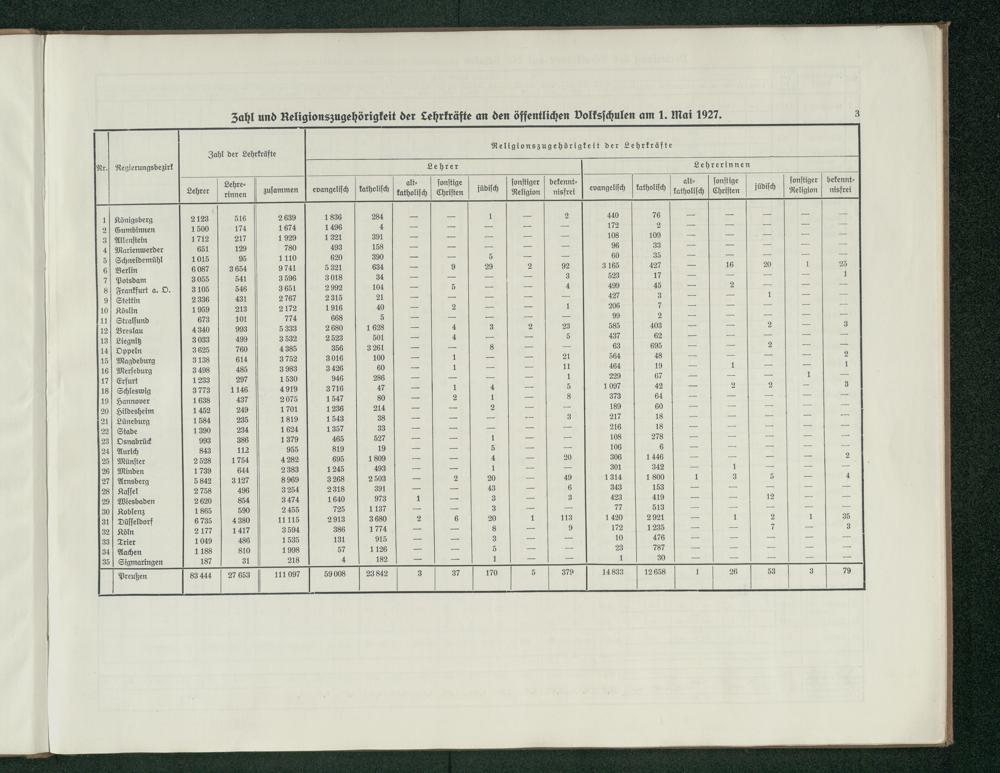 Die öffentlichen Volksschulen in Preußen nach dem Stande vom 1. Mai 1927