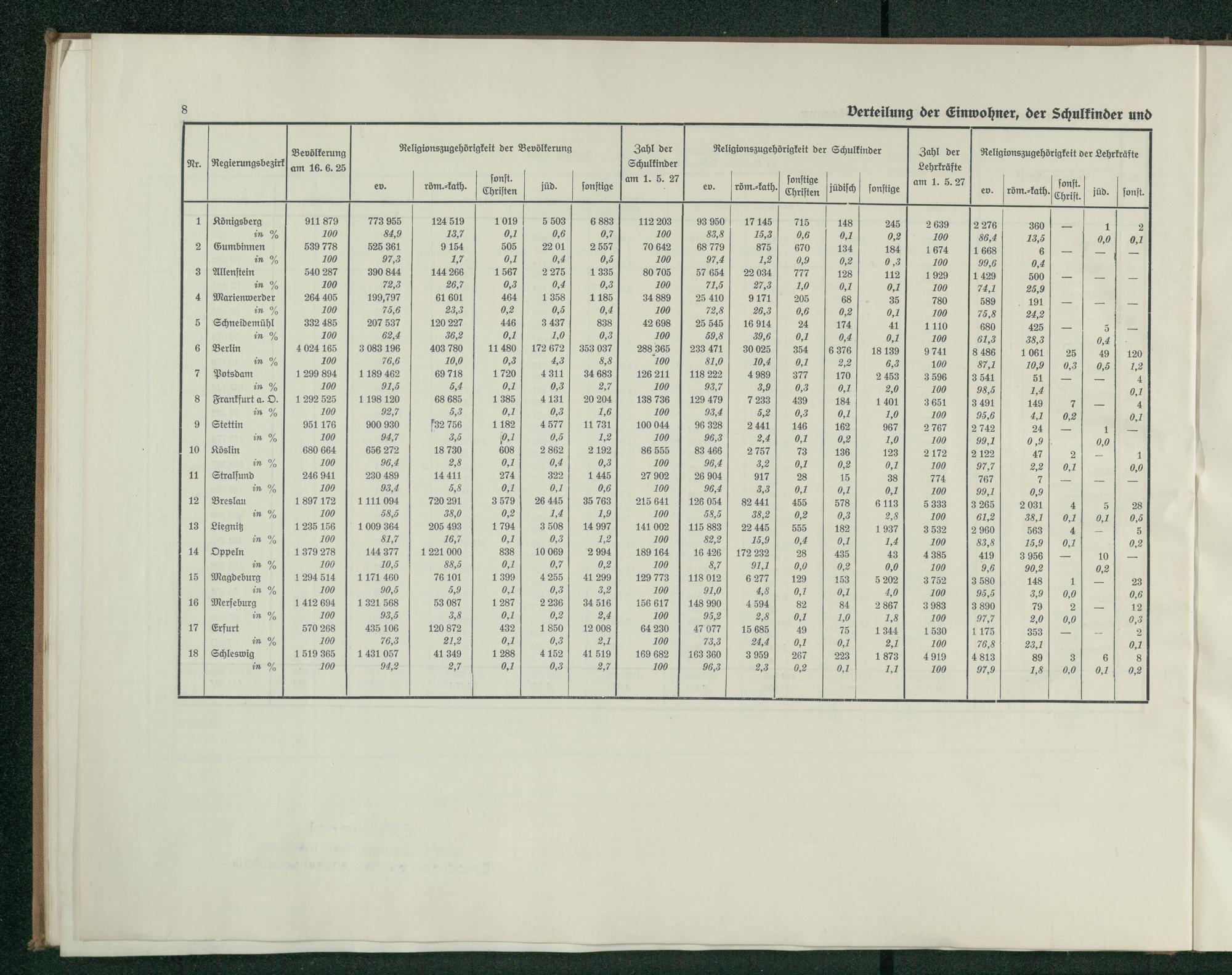 Verteilung der Einwohner, der Schulkinder und der Lehrkräfte nach dem Religionsb...