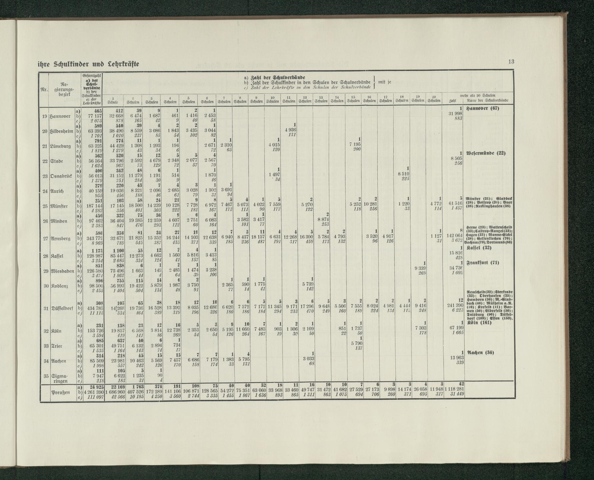 Übersicht über die Schulverbände, ihre Schulkinder und Lehrkräfte.