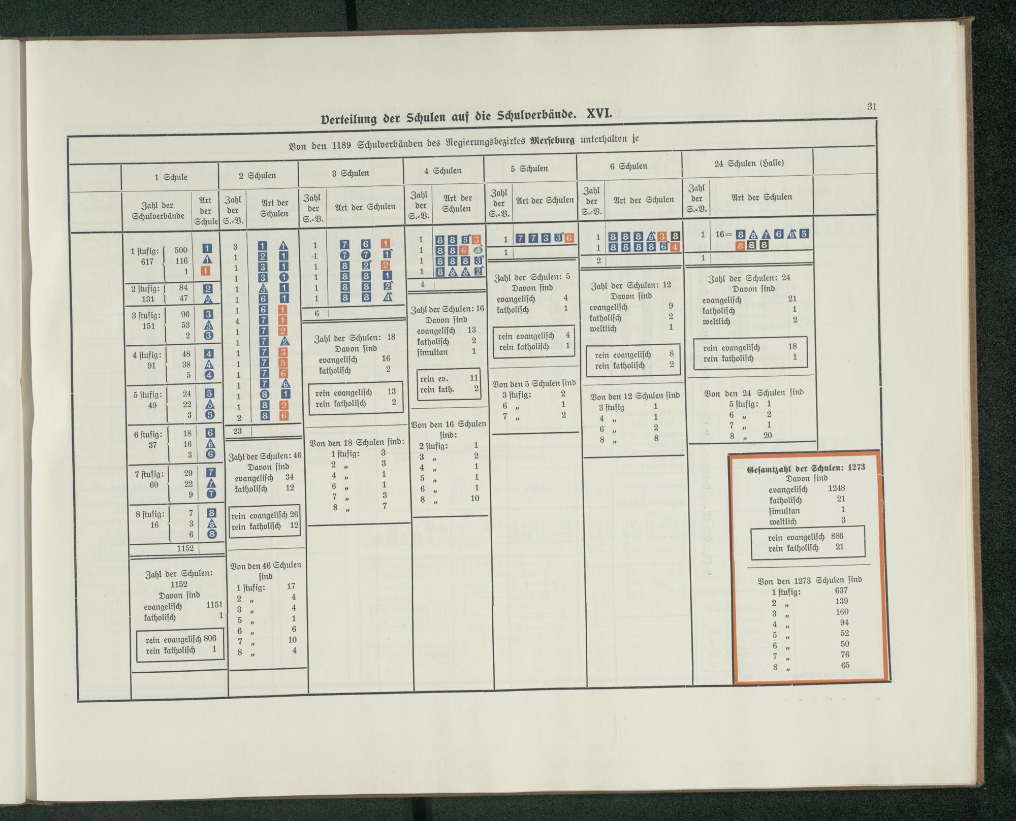 Verteilung der Schulen auf die Schulverbände. XVI. [in Merseburg]