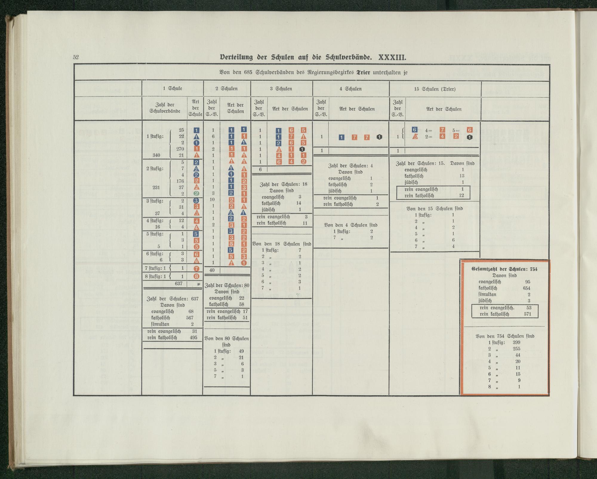 Verteilung der Schulen auf die Schulverbände. XXXIII. [in Trier]