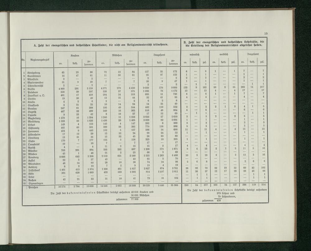 B. Zahl der evangelischen und katholischen Lehrkräfte, die die Erteilung des Religionsunterrichtes...