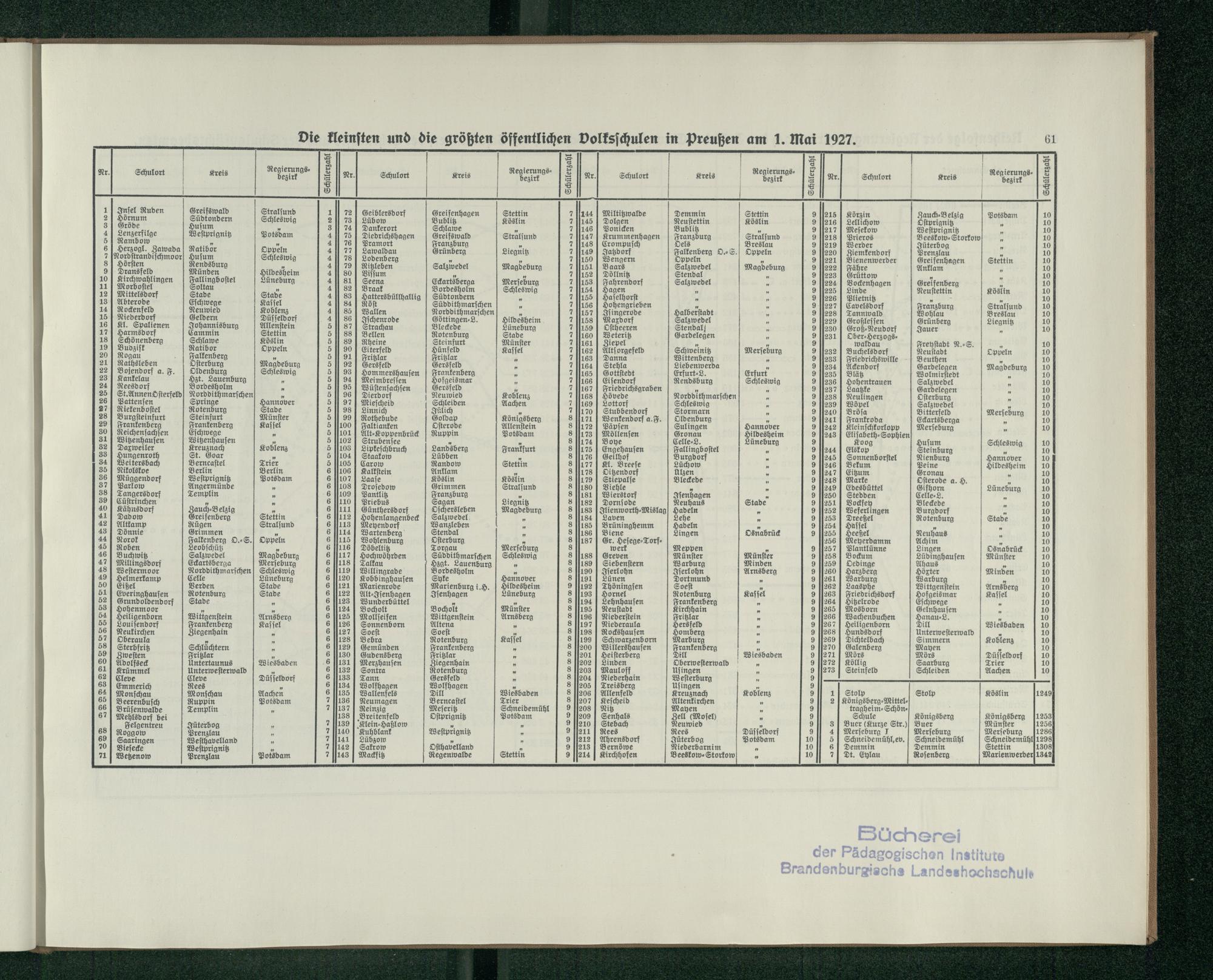 Die kleinsten und die größten öffentlichen Volksschulen in Preußen am 1. Mai 192...