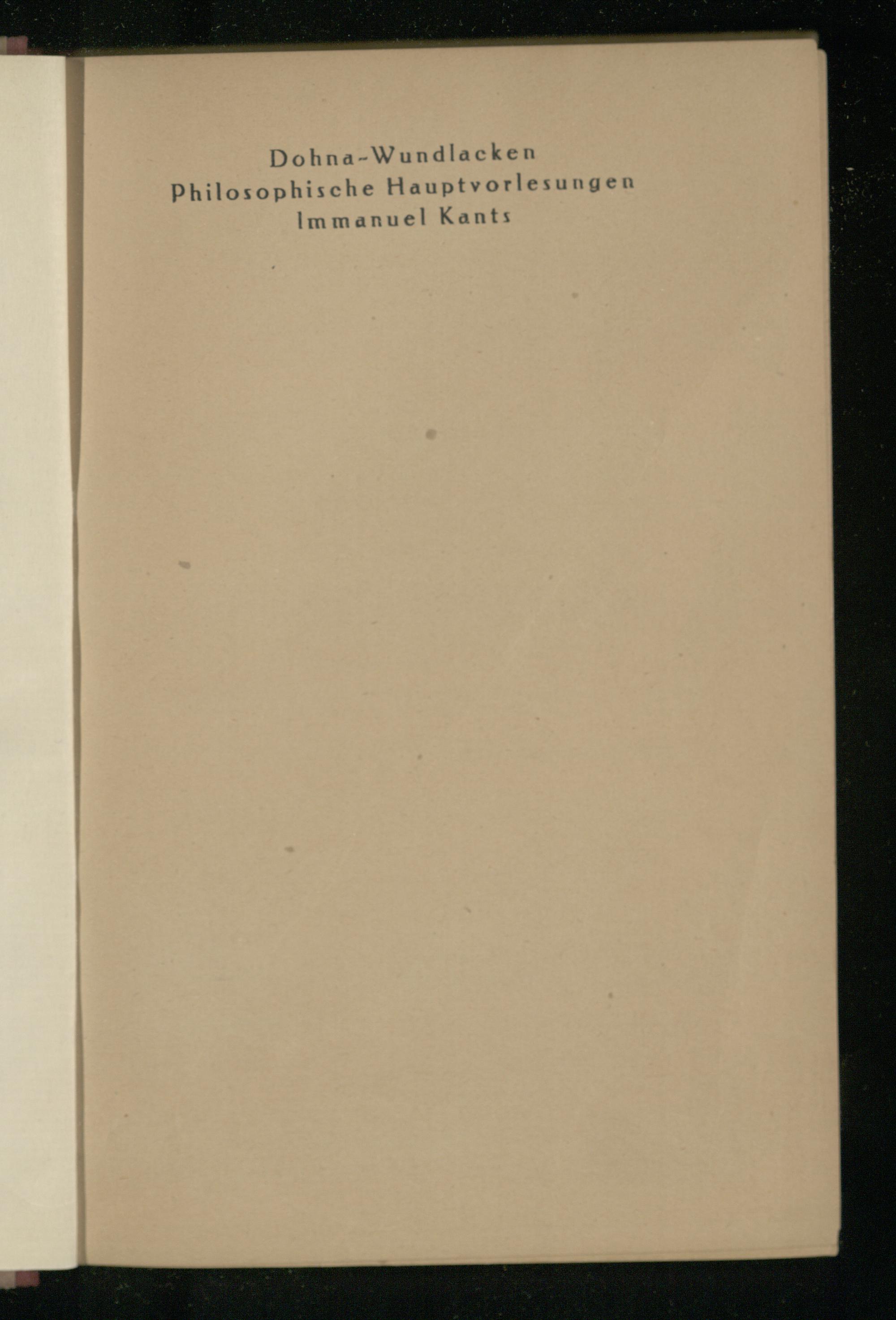Die philosophischen Hauptvorlesungen Immanuel Kants : nach den neu aufgefundenen Kollegheften des Grafen Heinrich zu Dohna-Wundlacken / hrsg. von Arnold Kowalewski