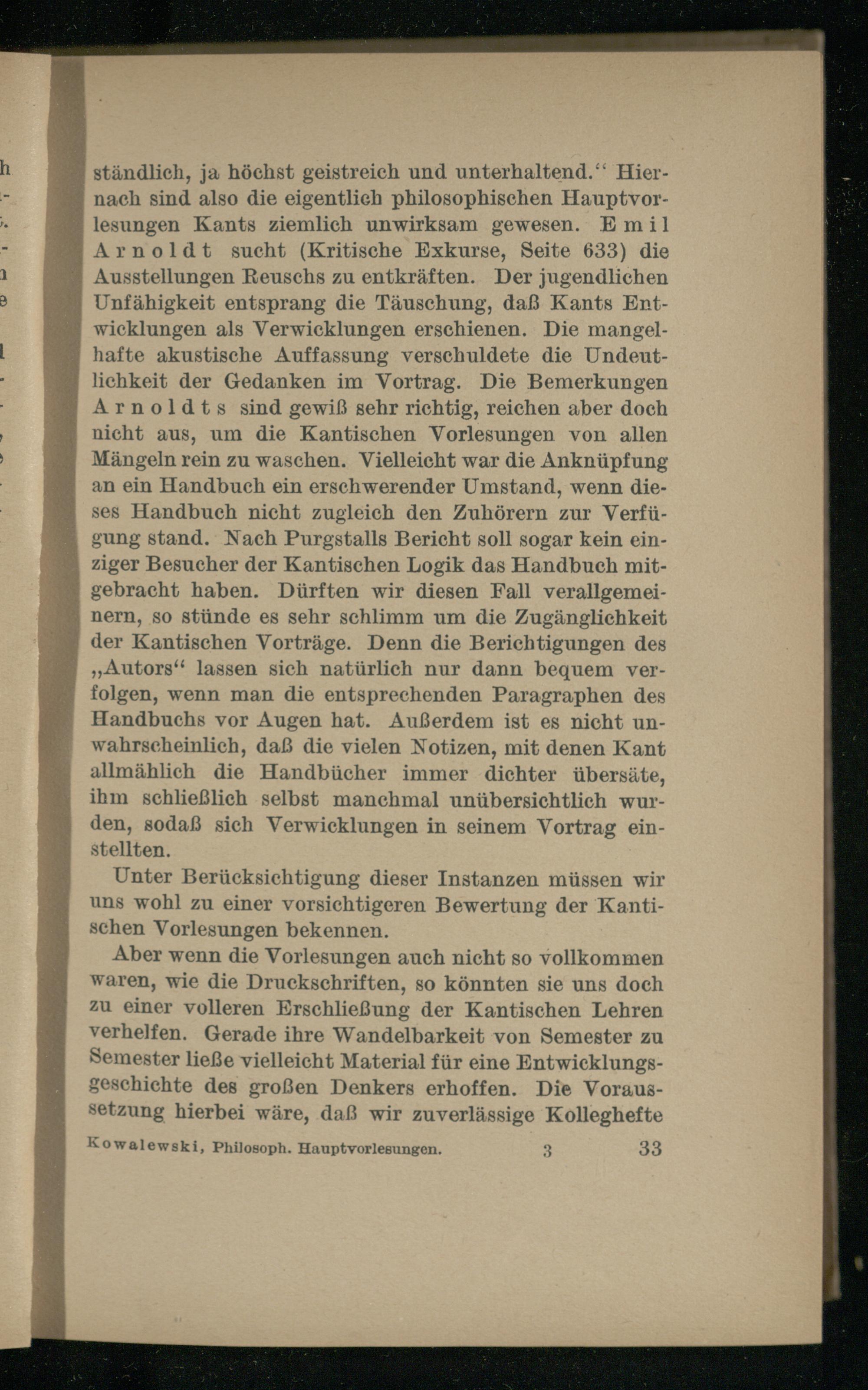 Die philosophischen Hauptvorlesungen Immanuel Kants : nach den neu aufgefundenen Kollegheften des Grafen Heinrich zu Dohna-Wundlacken / hrsg. von Arnold Kowalewski