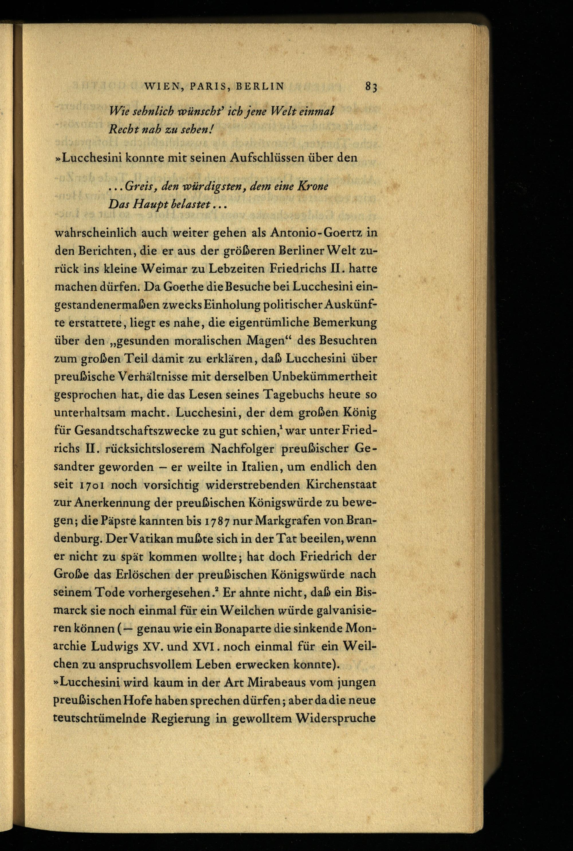 Das zweite Gespräch. Friedrich der Große, Lucchesini und Goethe