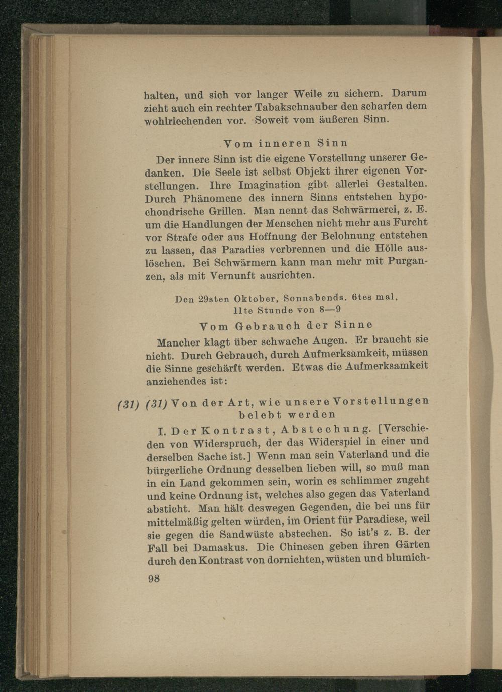 I. Von der Sinnlichkeit im Gegensatz mit dem Verstande.