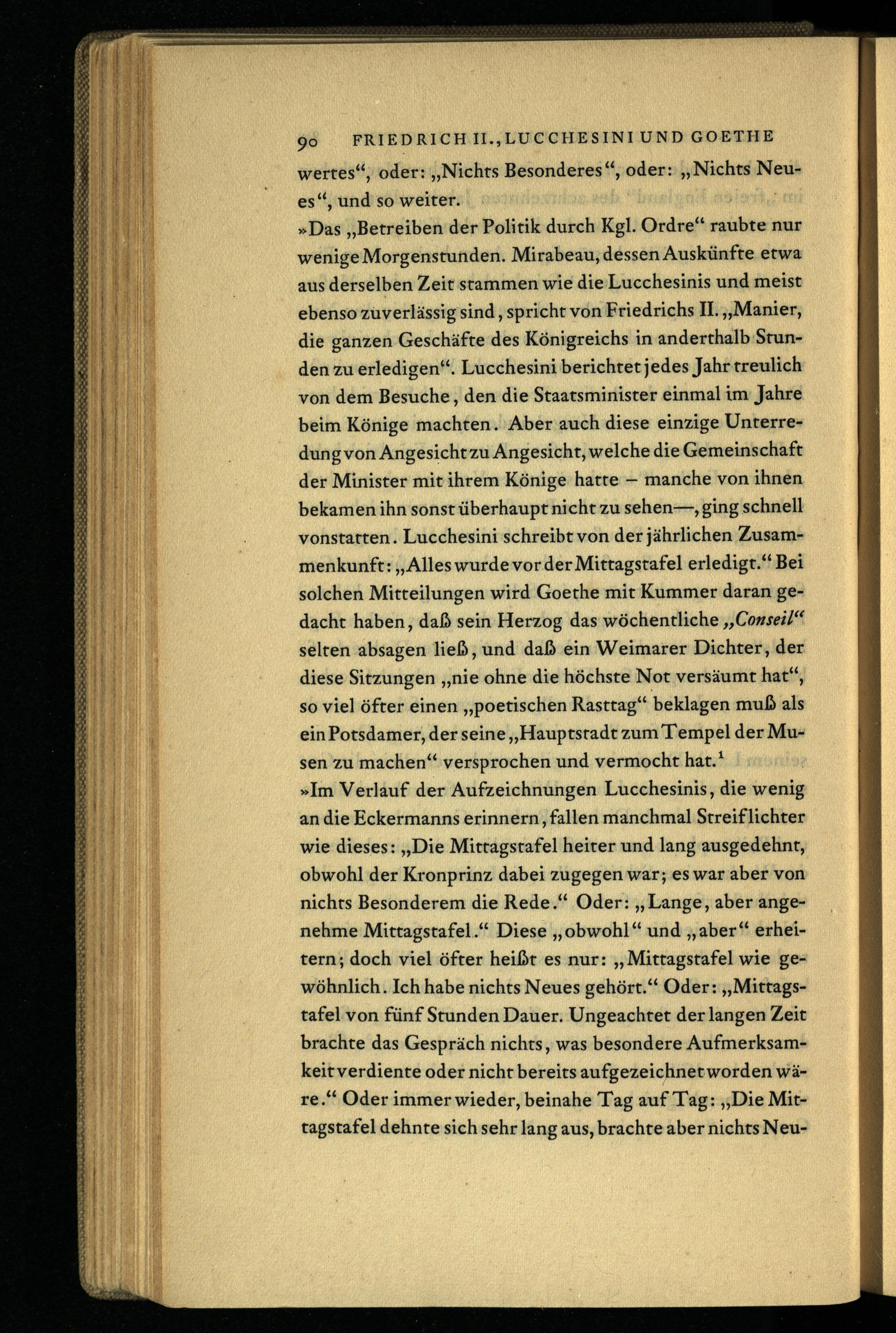 Das zweite Gespräch. Friedrich der Große, Lucchesini und Goethe