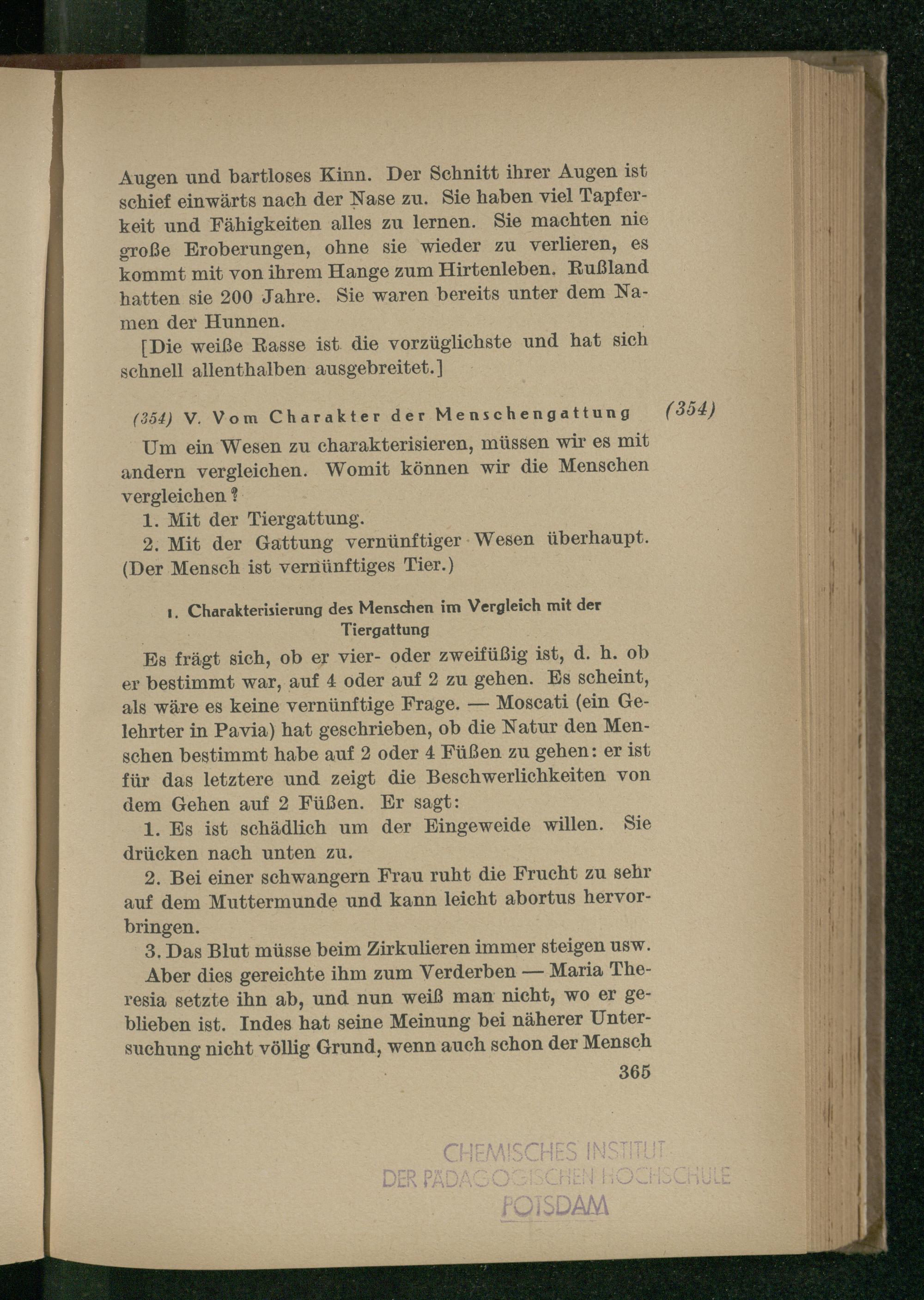 V. Vom Charakter der Menschengattung.