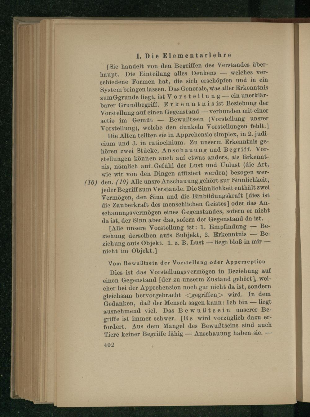 I. Die Elementarlehre.