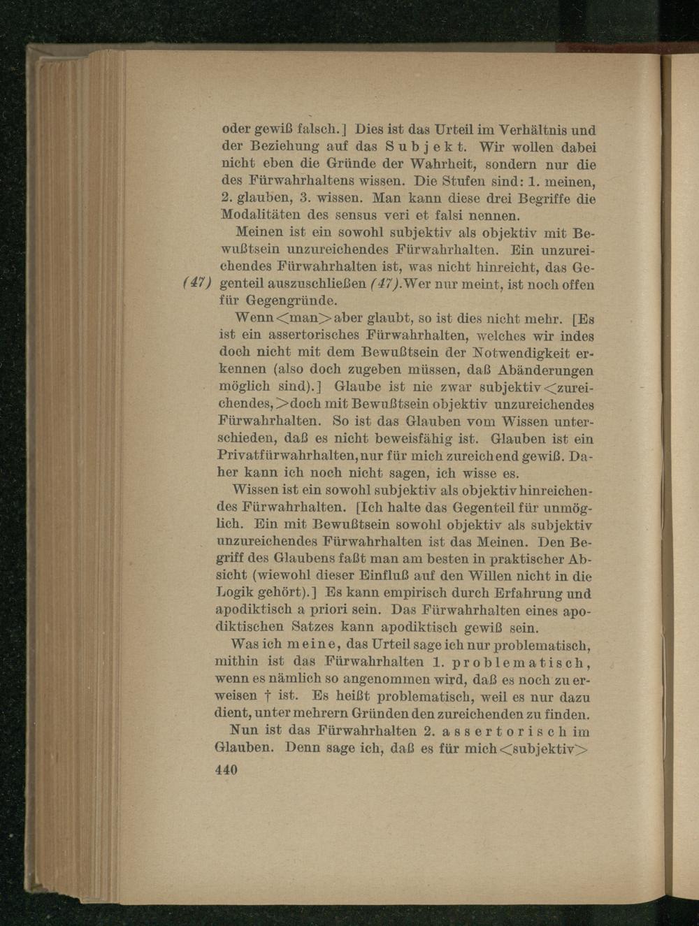Von der Gewißheit der Erkenntnis.
