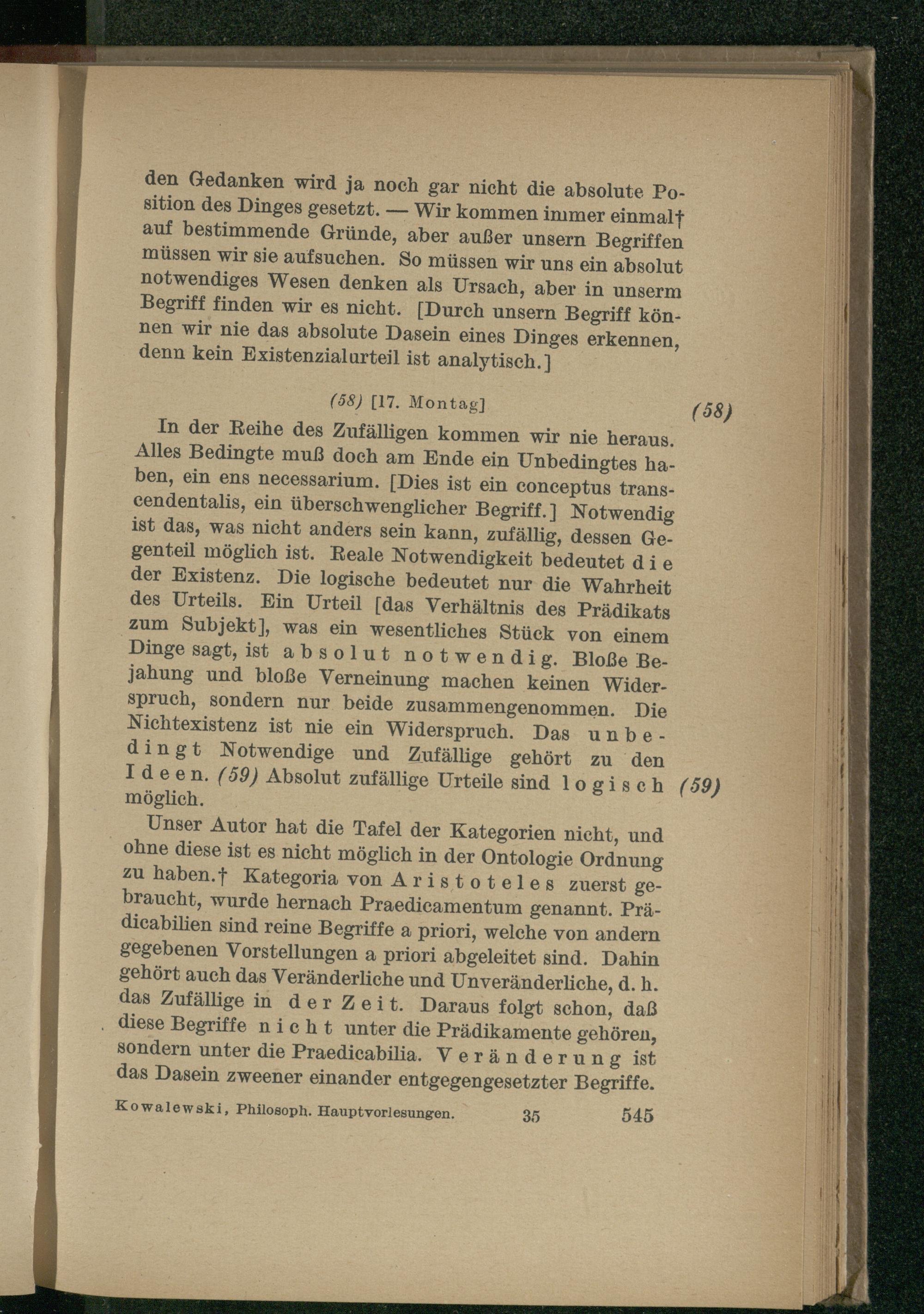 Die philosophischen Hauptvorlesungen Immanuel Kants : nach den neu aufgefundenen Kollegheften des Grafen Heinrich zu Dohna-Wundlacken / hrsg. von Arnold Kowalewski