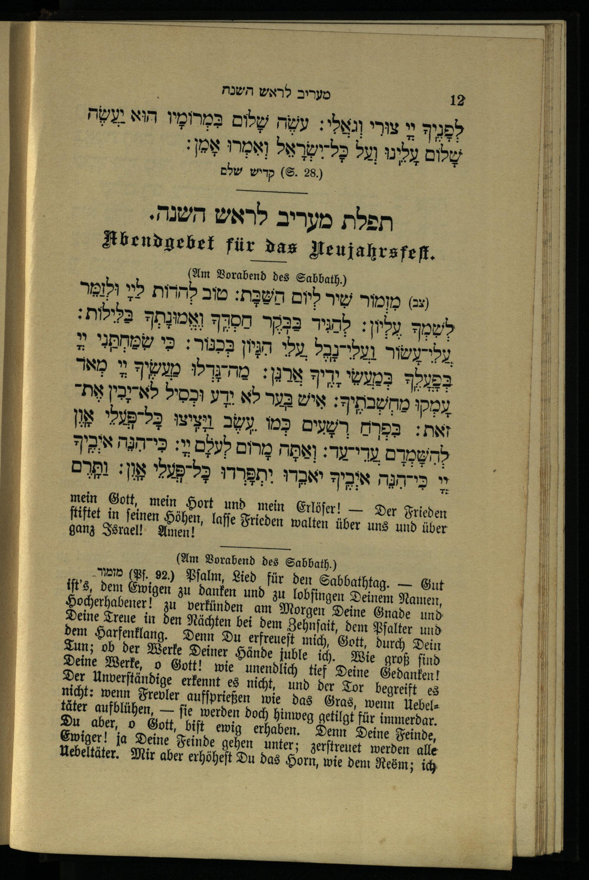 תפילת מעריב לראש השנה Abendgebet für das Neujahrsfest.