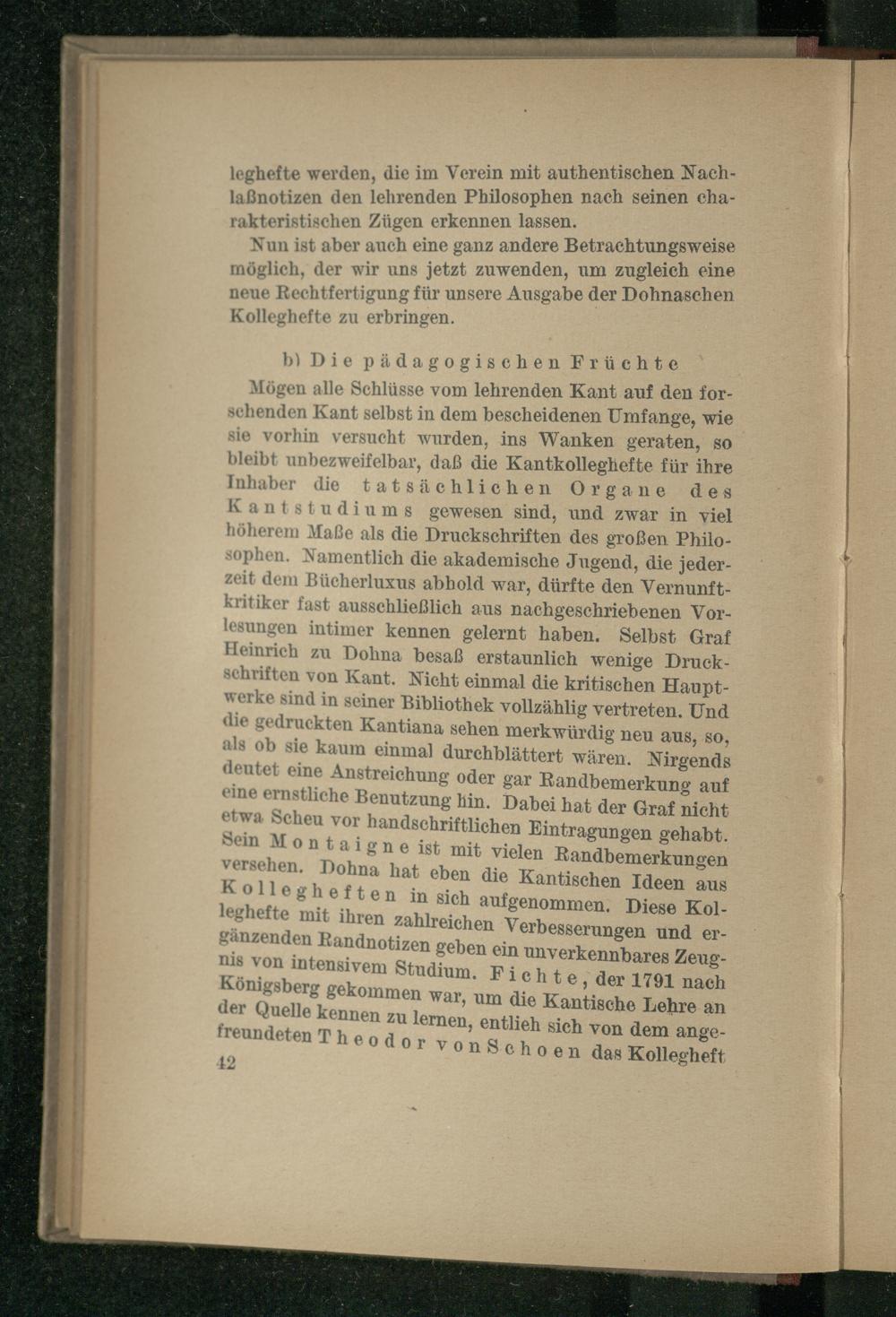 Die philosophischen Hauptvorlesungen Immanuel Kants : nach den neu aufgefundenen Kollegheften des Grafen Heinrich zu Dohna-Wundlacken / hrsg. von Arnold Kowalewski