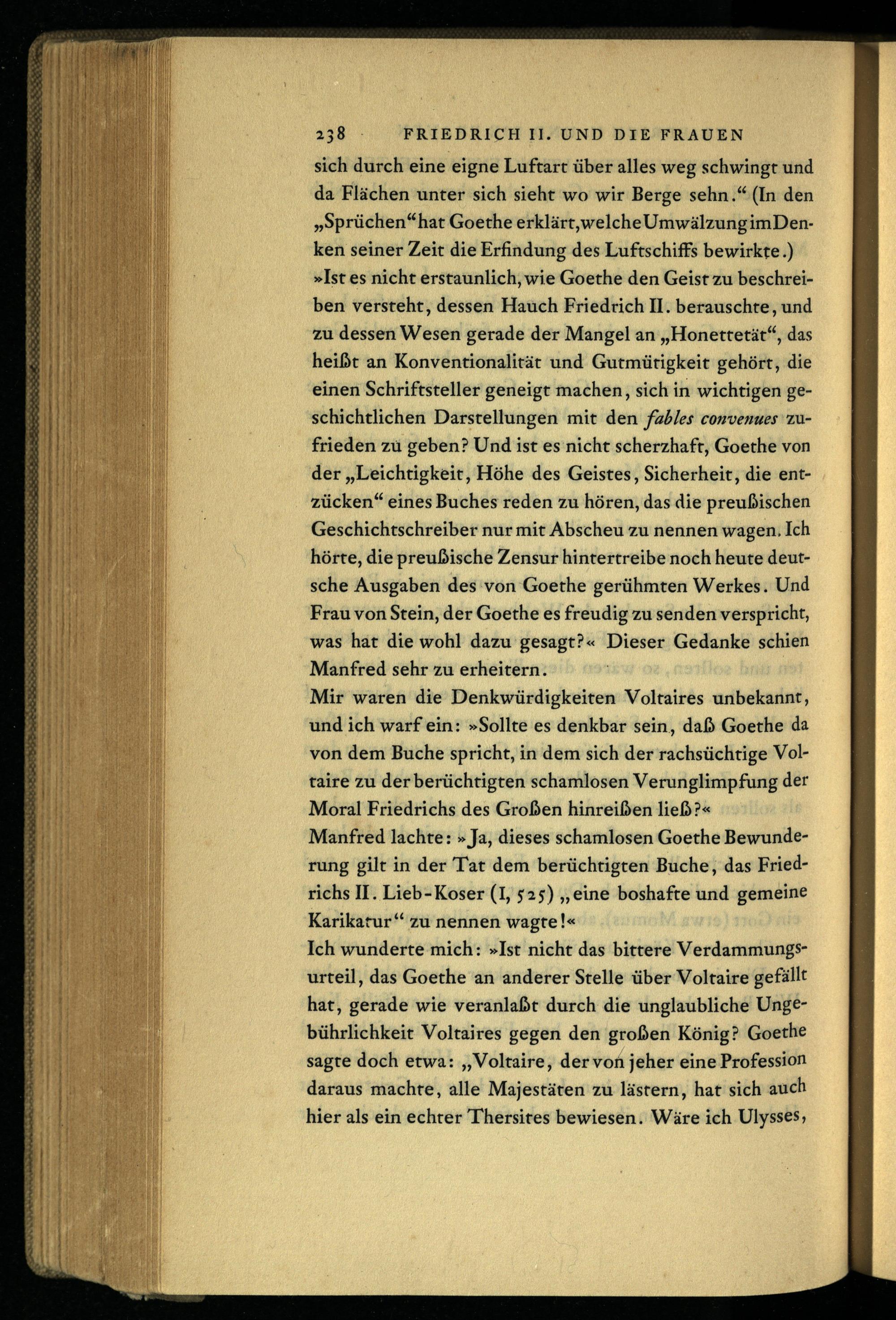 Auszüge aus dem dritten Gespräch. Friedrich II. und sein Fredersdorf, Goethe, Voltaire...
