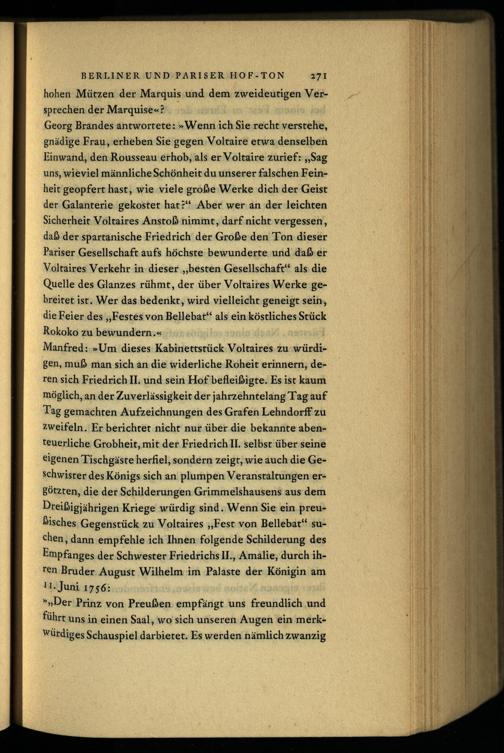 Auszüge aus dem dritten Gespräch. Friedrich II. und sein Fredersdorf, Goethe, Voltaire...