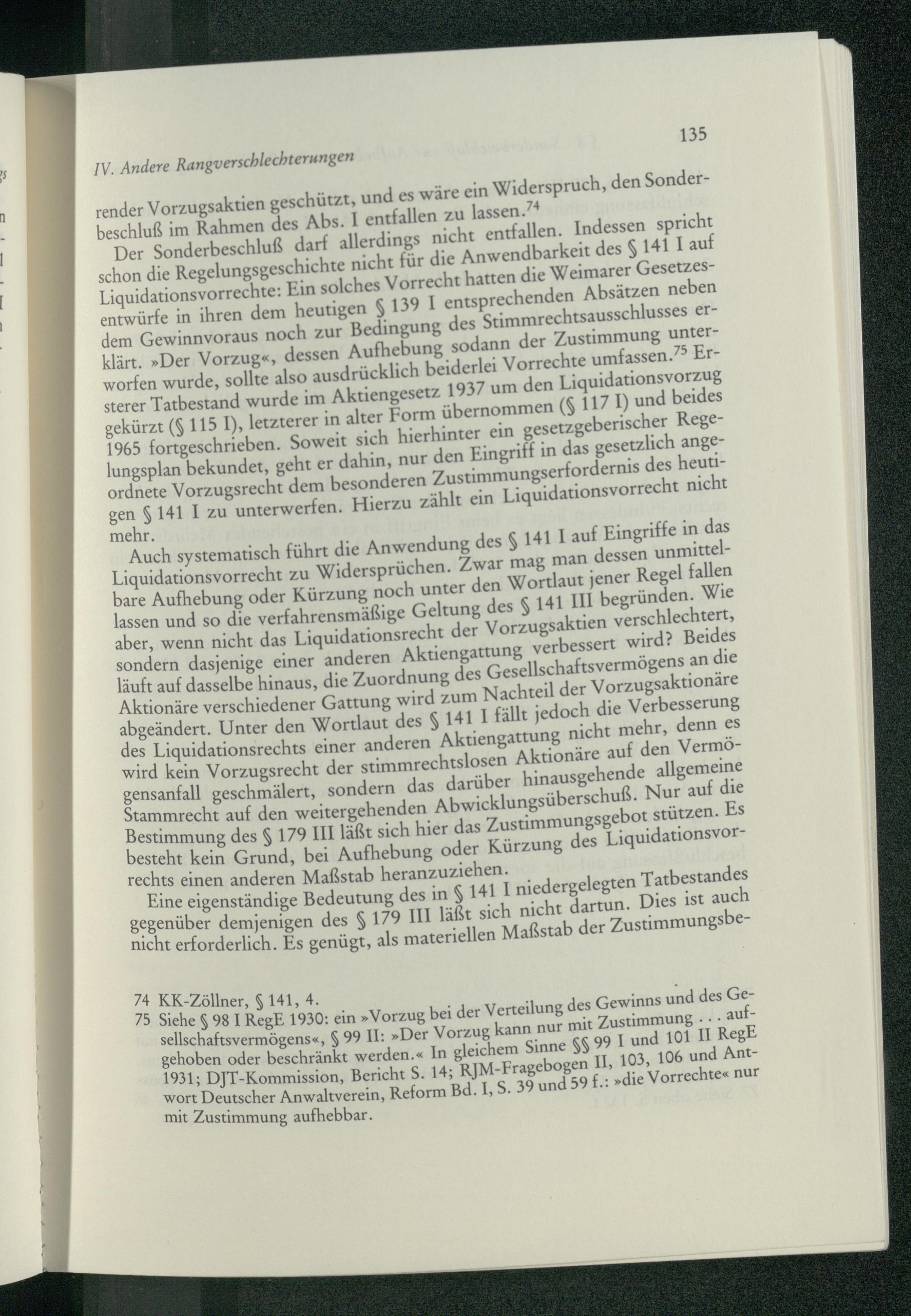§ 8 Sonderbeschluß zur Aufhebung oder Beschränkung des Vorzugs