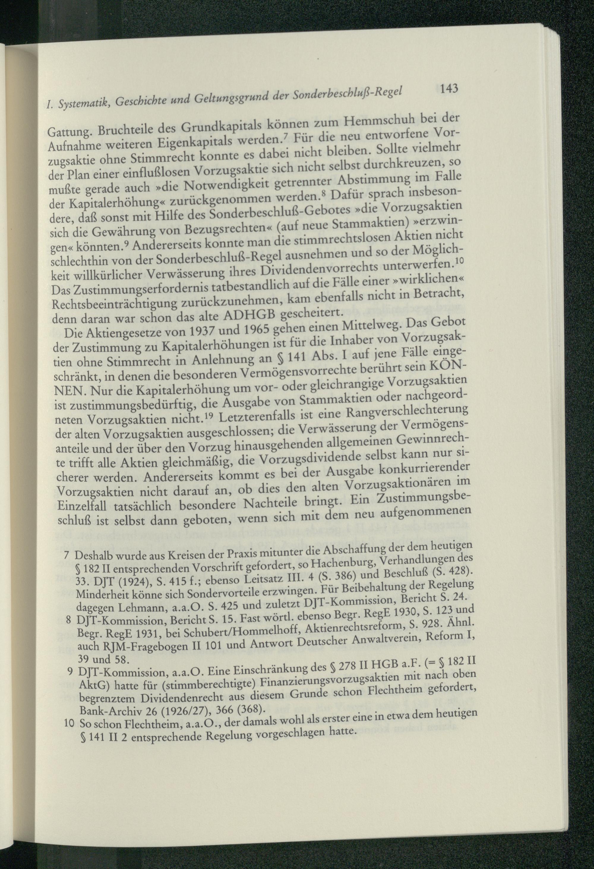 2. Einschränkung des Sonderbeschluß-Gebot für Vorzugsaktien ohne Stimmrecht (§ 141...