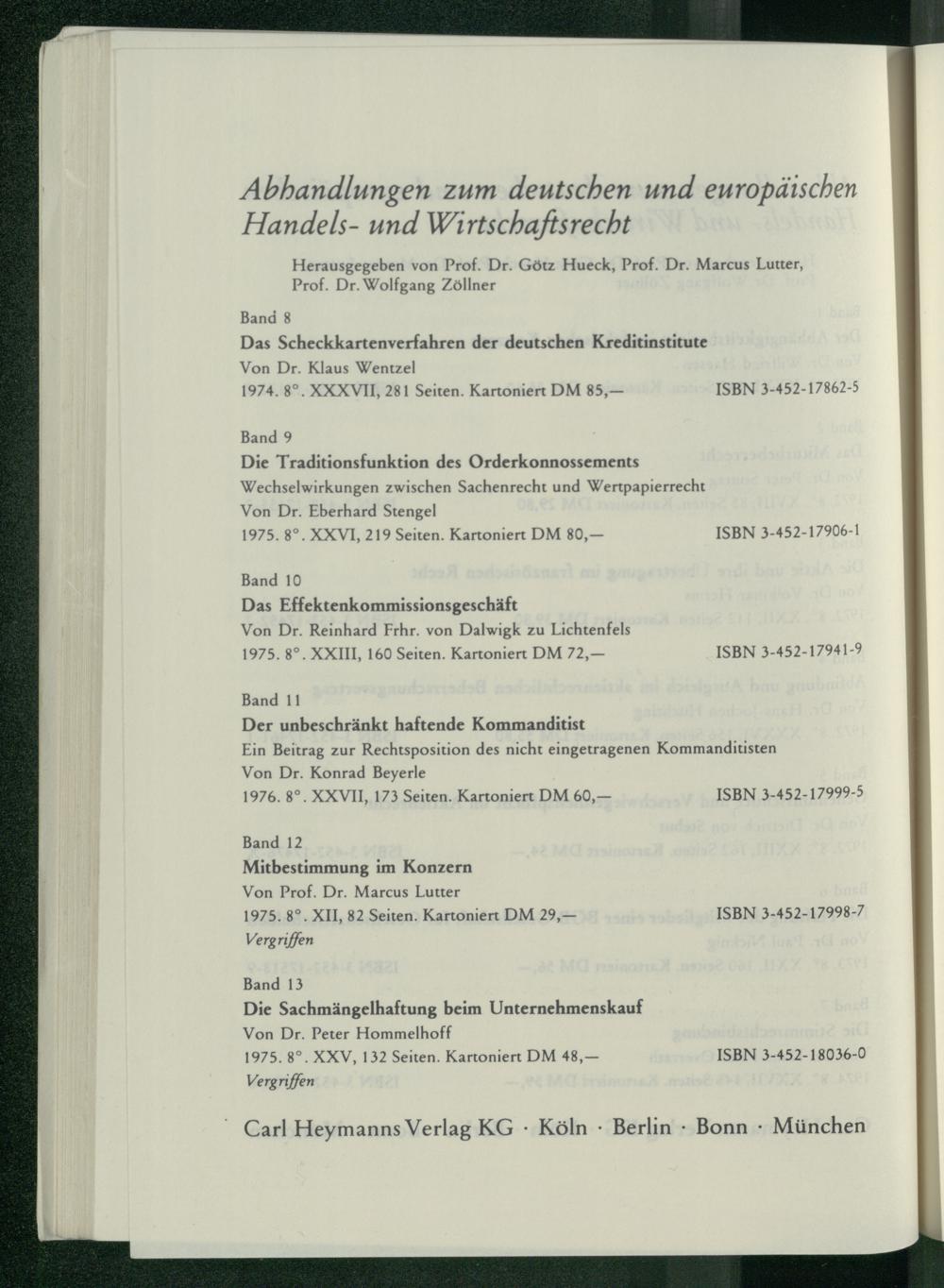 Abhandlungen zum deutschen und europäischen Handels- und Wirtschaftsrecht