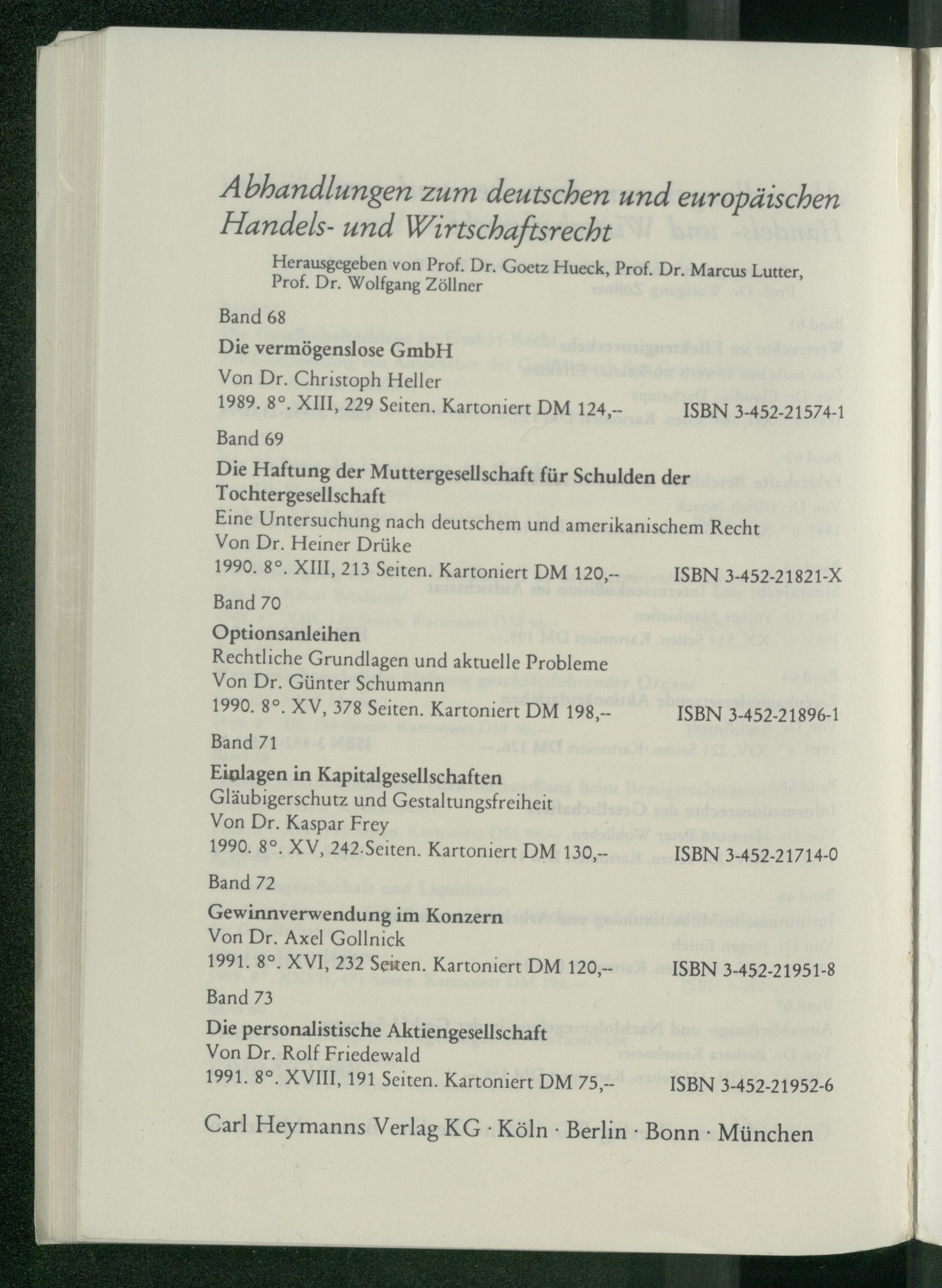 Abhandlungen zum deutschen und europäischen Handels- und Wirtschaftsrecht
