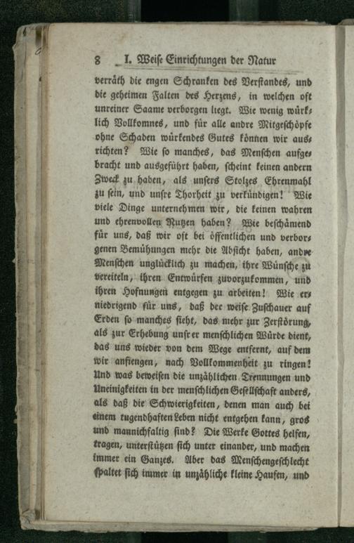 I. Ueber viele weise Einrichtungen der Natur. Fortsetzung. f. St. I.