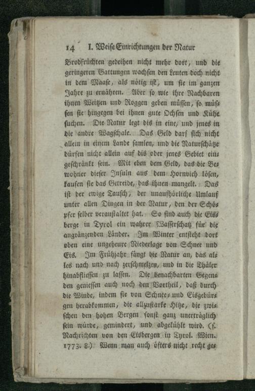 I. Ueber viele weise Einrichtungen der Natur. Fortsetzung. f. St. I.