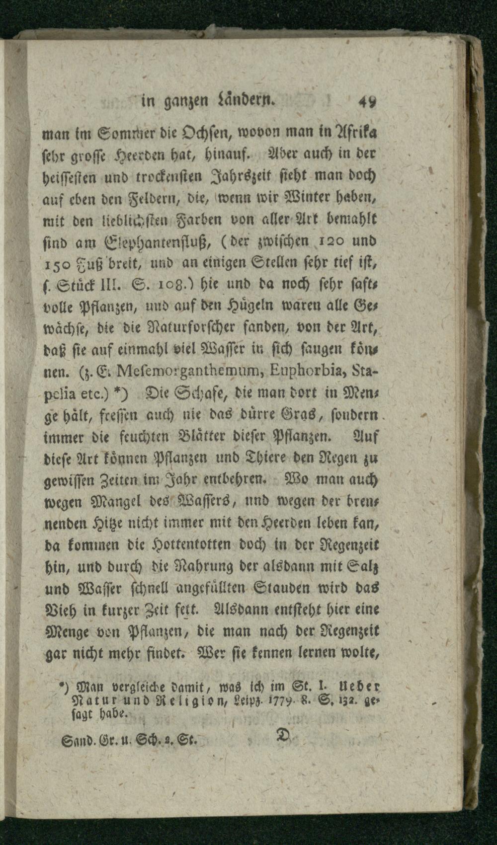 I. Ueber viele weise Einrichtungen der Natur. Fortsetzung. f. St. I.