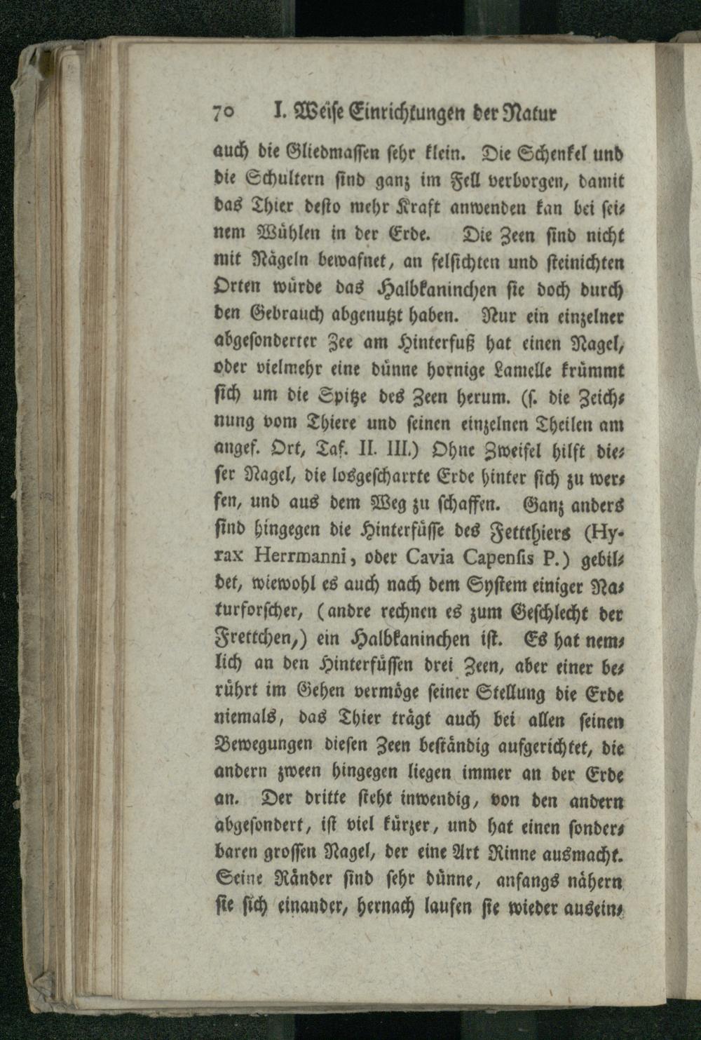 I. Ueber viele weise Einrichtungen der Natur. Fortsetzung. f. St. I.