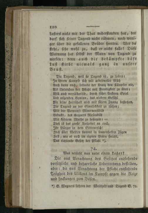 Catechismus der sittlichen Vernunft. Oder: Kurze und Kindern verständliche Erklärung der sittlichen und religiösen Grundbegriffe / durchgängig mit Beyspielen erläutert von Johann Georg Schollmeyer