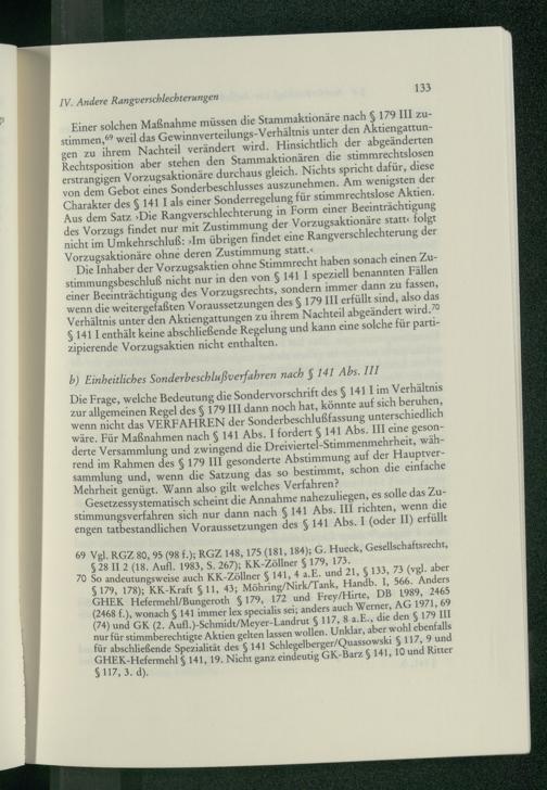 1. Verhältnis zwischen den Sonderbeschluß-Regeln des § 141 Abs. I und des § 179 Abs....
