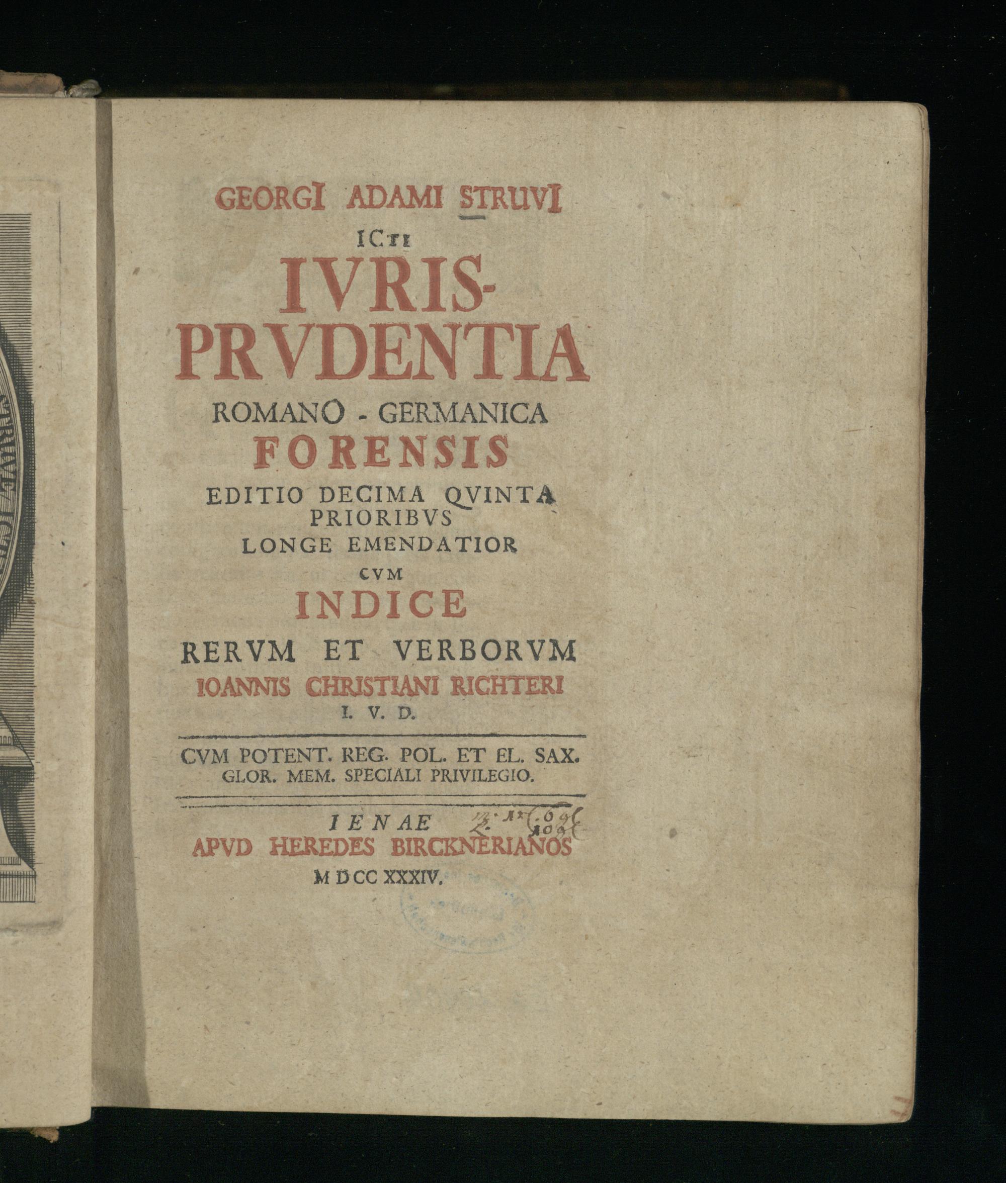 Additiones Ad Georgii Adami Struvii, JCti, Ivrisprvdentiam Romano-Germanicam, In Epitomen Juxta Hodiernvm Vsvm Redactam, Exhibentes Magnifici Avctoris Desiderio Svccinctam VsViqve Accommodatam Titvlorvm, Qvi Deerant, E Digestis Repetitionem, Vt Hic Jvrisprvdentiæ Libellvs Pandectarvm Volvmen Accvrativs Evolvtvris Aditvm Patefaciat, Et Ex Eodem Vtiliora Repetitvris Ansam Præbeat, Opera Lüderi Menckenii Phil. Et J. V. D. Cvm Indice