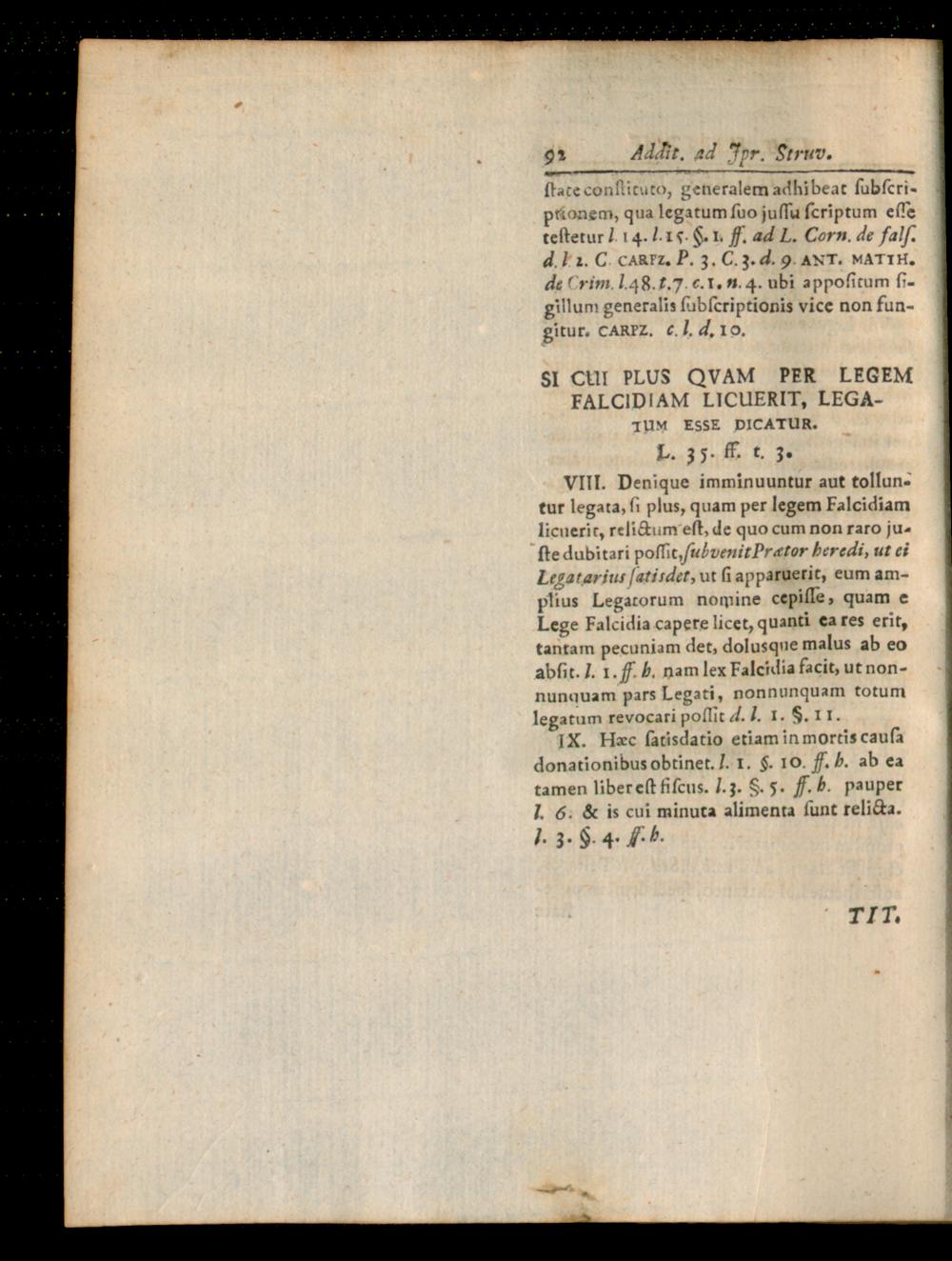 Additiones Ad Georgii Adami Struvii, JCti, Ivrisprvdentiam Romano-Germanicam, In Epitomen Juxta Hodiernvm Vsvm Redactam, Exhibentes Magnifici Avctoris Desiderio Svccinctam VsViqve Accommodatam Titvlorvm, Qvi Deerant, E Digestis Repetitionem, Vt Hic Jvrisprvdentiæ Libellvs Pandectarvm Volvmen Accvrativs Evolvtvris Aditvm Patefaciat, Et Ex Eodem Vtiliora Repetitvris Ansam Præbeat, Opera Lüderi Menckenii Phil. Et J. V. D. Cvm Indice