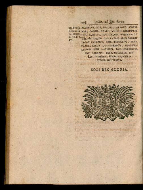 Additiones Ad Georgii Adami Struvii, JCti, Ivrisprvdentiam Romano-Germanicam, In Epitomen Juxta Hodiernvm Vsvm Redactam, Exhibentes Magnifici Avctoris Desiderio Svccinctam VsViqve Accommodatam Titvlorvm, Qvi Deerant, E Digestis Repetitionem, Vt Hic Jvrisprvdentiæ Libellvs Pandectarvm Volvmen Accvrativs Evolvtvris Aditvm Patefaciat, Et Ex Eodem Vtiliora Repetitvris Ansam Præbeat, Opera Lüderi Menckenii Phil. Et J. V. D. Cvm Indice