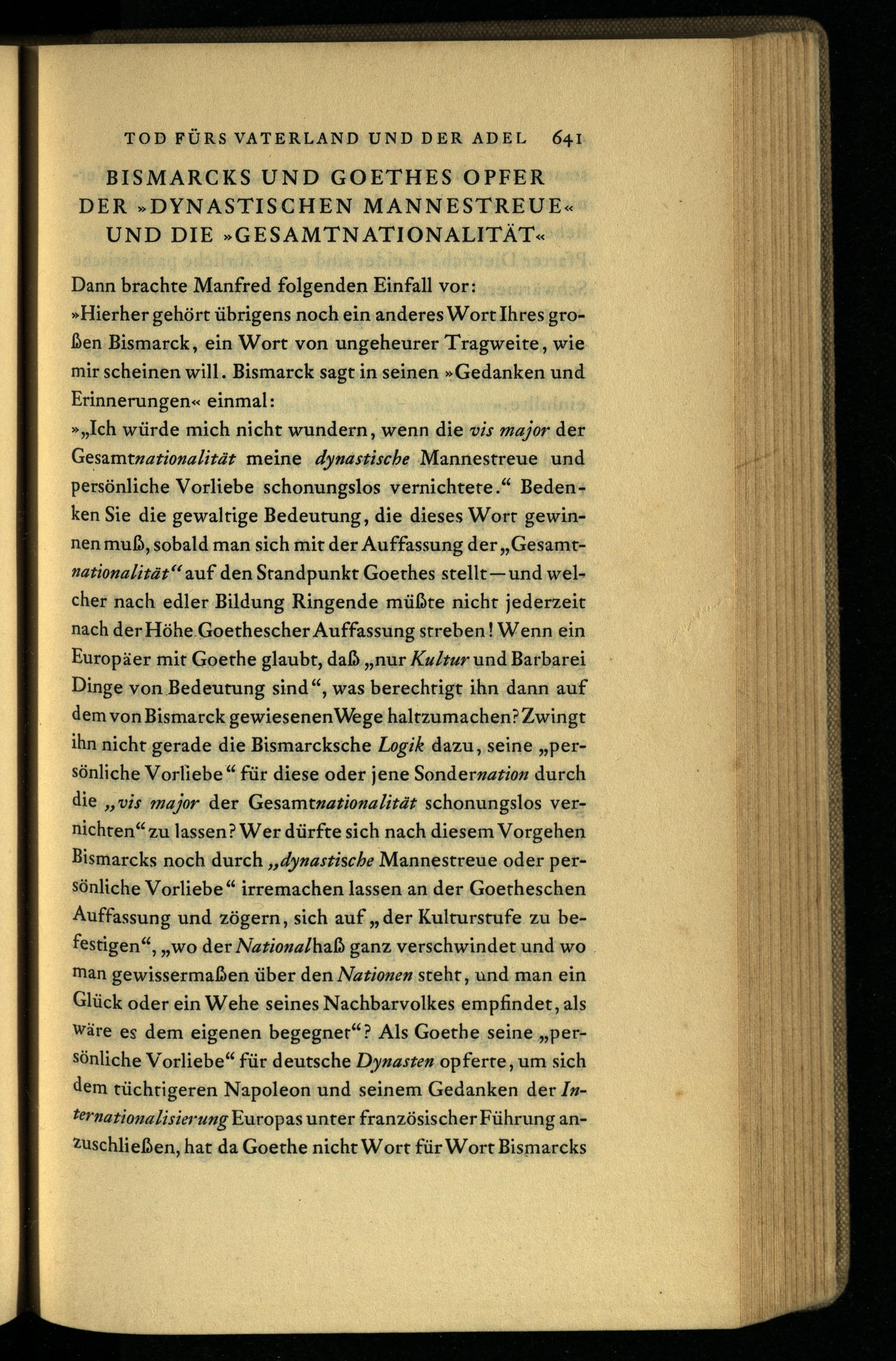 Bismarcks und Goethes Opfer der "dynastischen Mannestreue" und die "Gesamtnation...