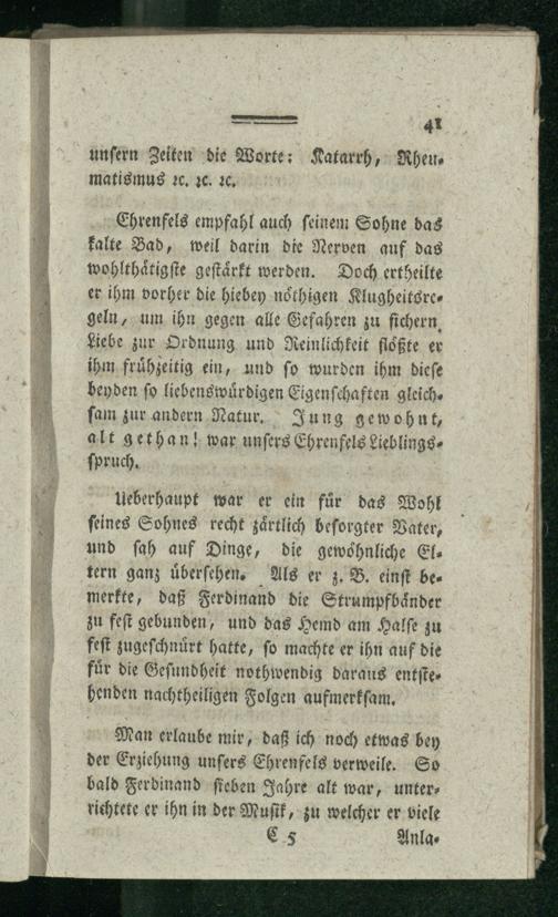 Zweytes Kapitel. Ferdinand wird in die Gesellschaft der Christen aufgenommen - Regeln, welche Herr Ehrenfels seinem Kindermädchen ertheilte.