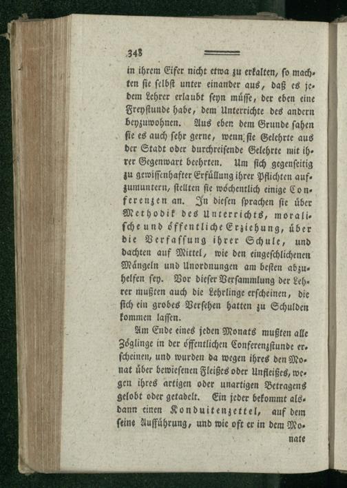 Eilftes Kapitel. Worin klagen über Mangel an guten Lehrern geführt werden, und worin sich die Lehrer in Konferenzen über Methodik des Unterrichts, moralische und offentliche Erziehung, wie auch über die ganze Schulverfassung collegialisch unterreden - Schulgesetze.