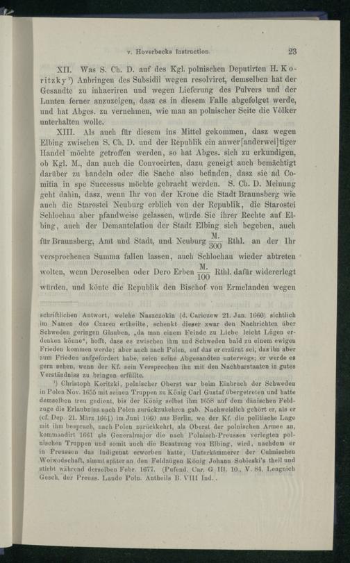 1. Des Herrn v. Hoverbeck's Vorrichtung zu Warschau auf dem Convocationstage.