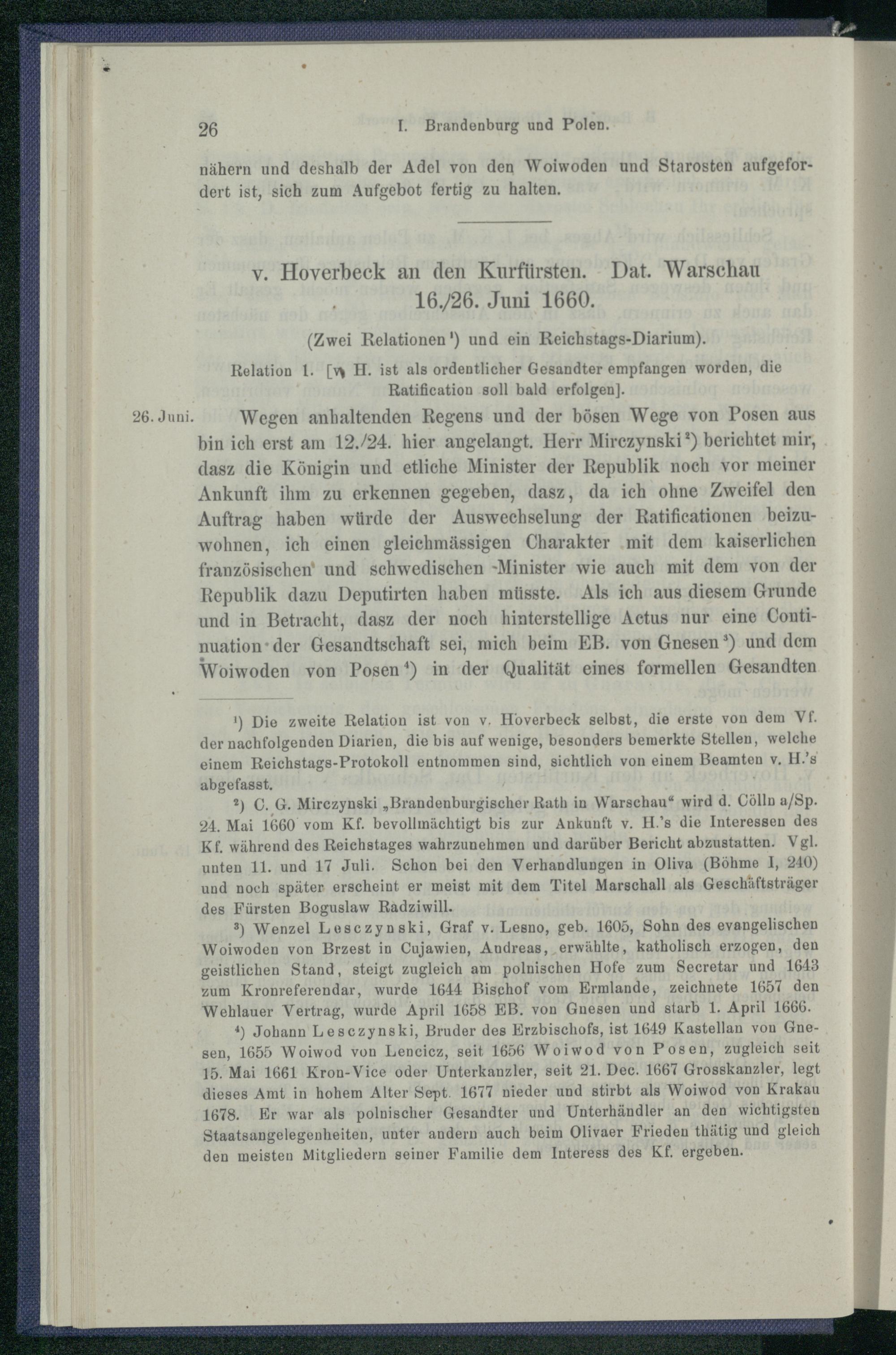 I. Brandenburg und Polen nach dem Friedensschluss von Oliva. 1660 - 1663.