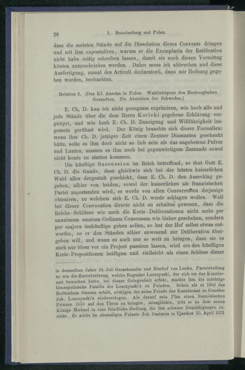 I. Brandenburg und Polen nach dem Friedensschluss von Oliva. 1660 - 1663.