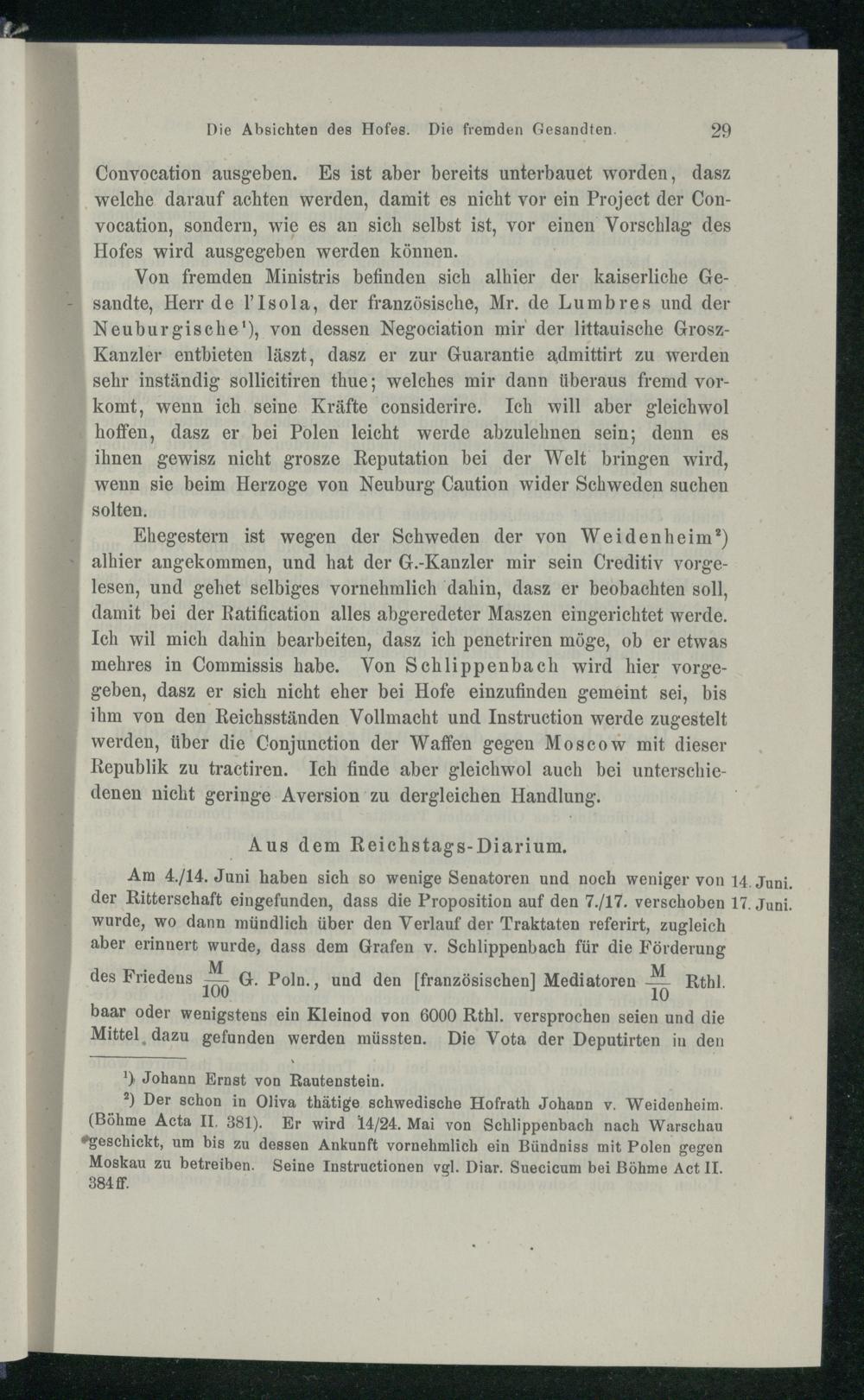 1. Des Herrn v. Hoverbeck's Vorrichtung zu Warschau auf dem Convocationstage.