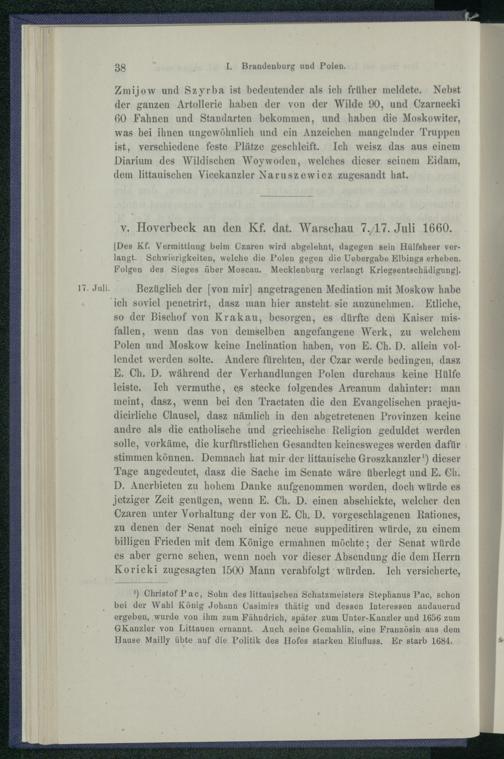 I. Brandenburg und Polen nach dem Friedensschluss von Oliva. 1660 - 1663.