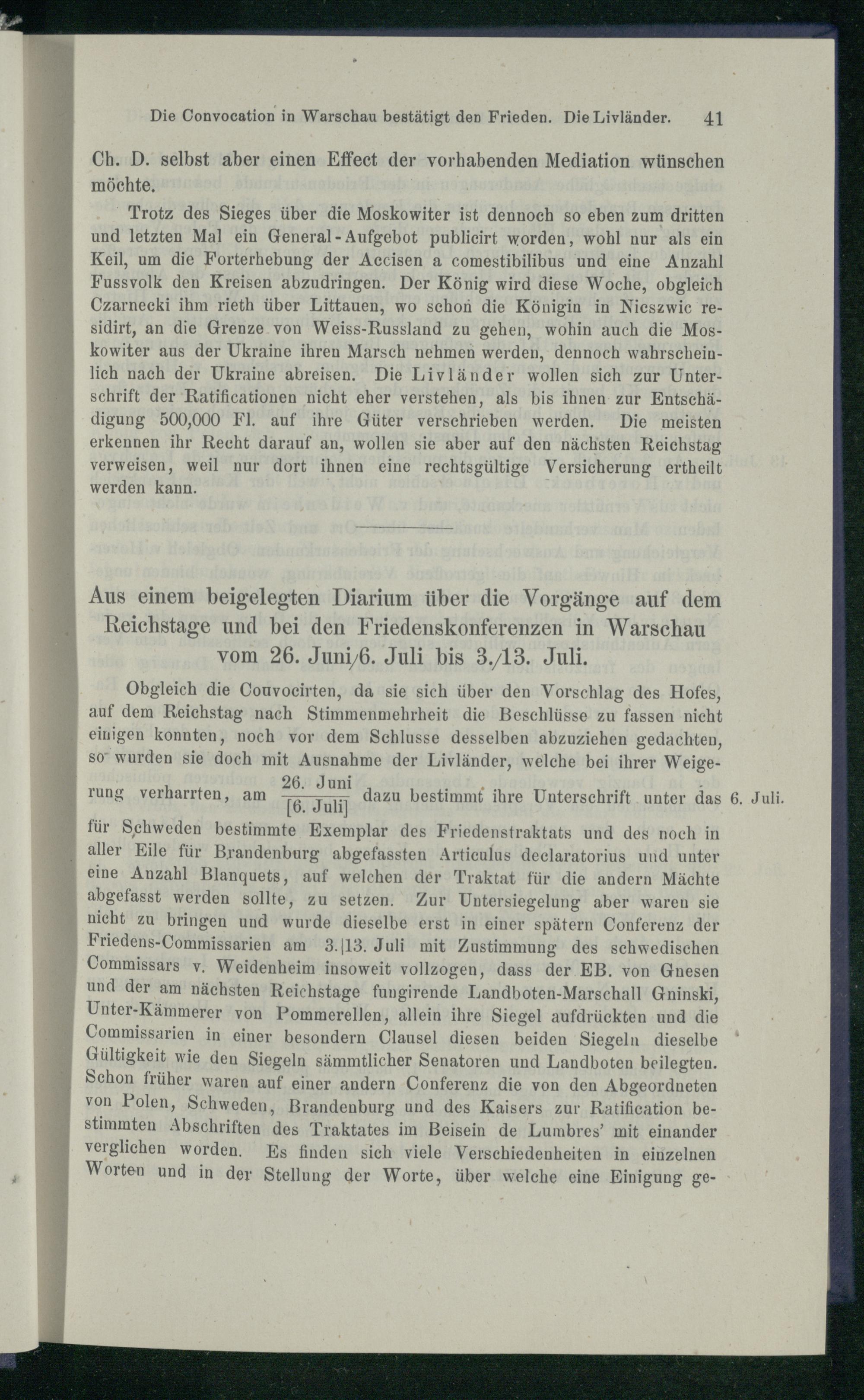 1. Des Herrn v. Hoverbeck's Vorrichtung zu Warschau auf dem Convocationstage.
