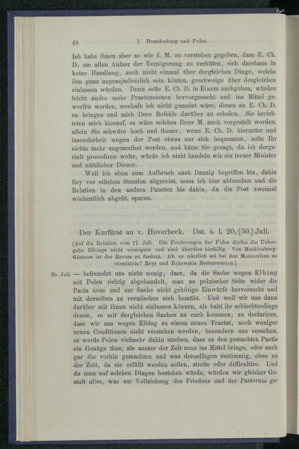 I. Brandenburg und Polen nach dem Friedensschluss von Oliva. 1660 - 1663.