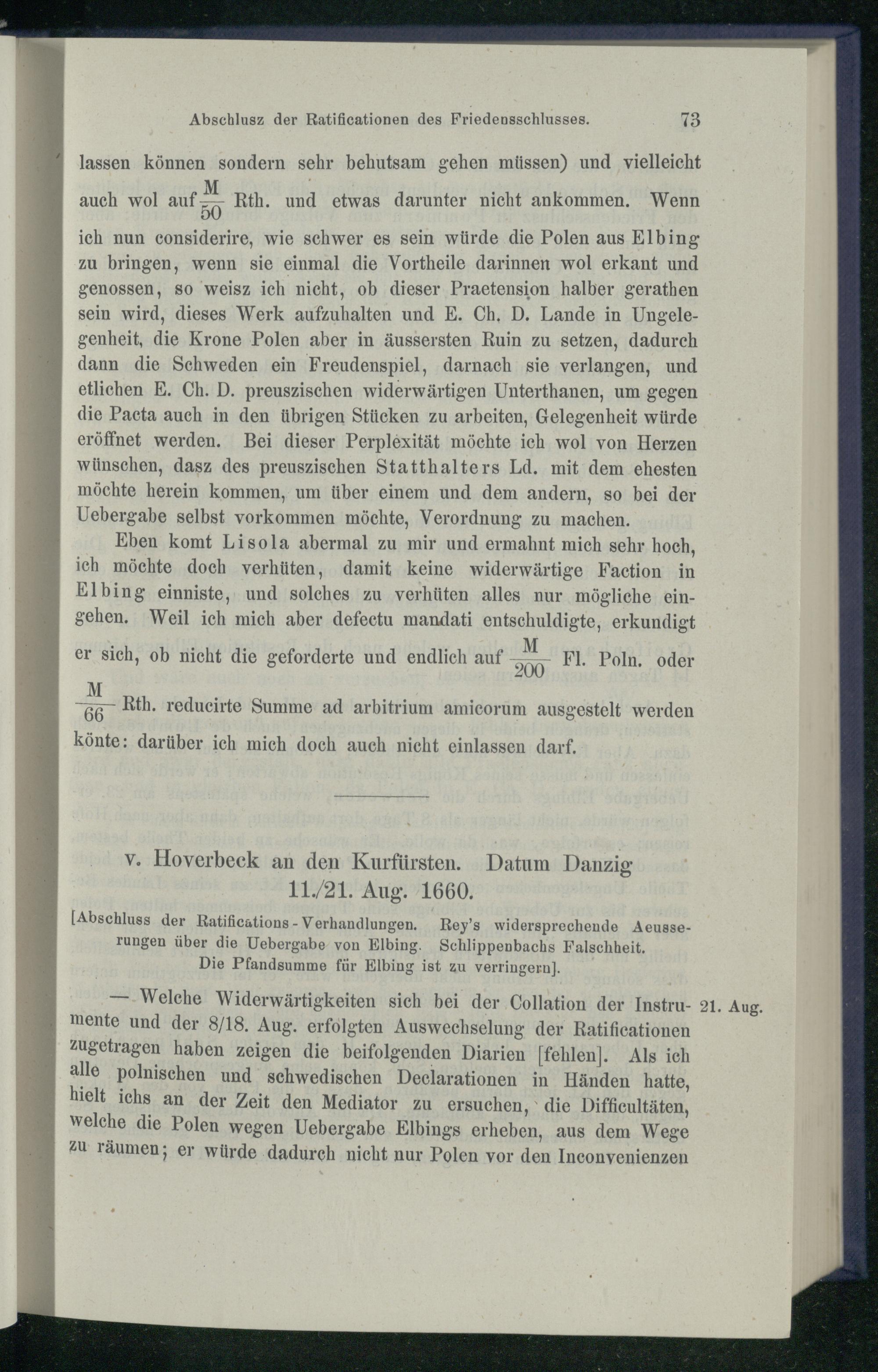 I. Brandenburg und Polen nach dem Friedensschluss von Oliva. 1660 - 1663.